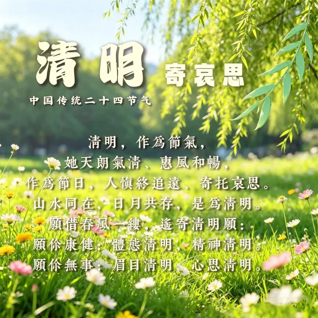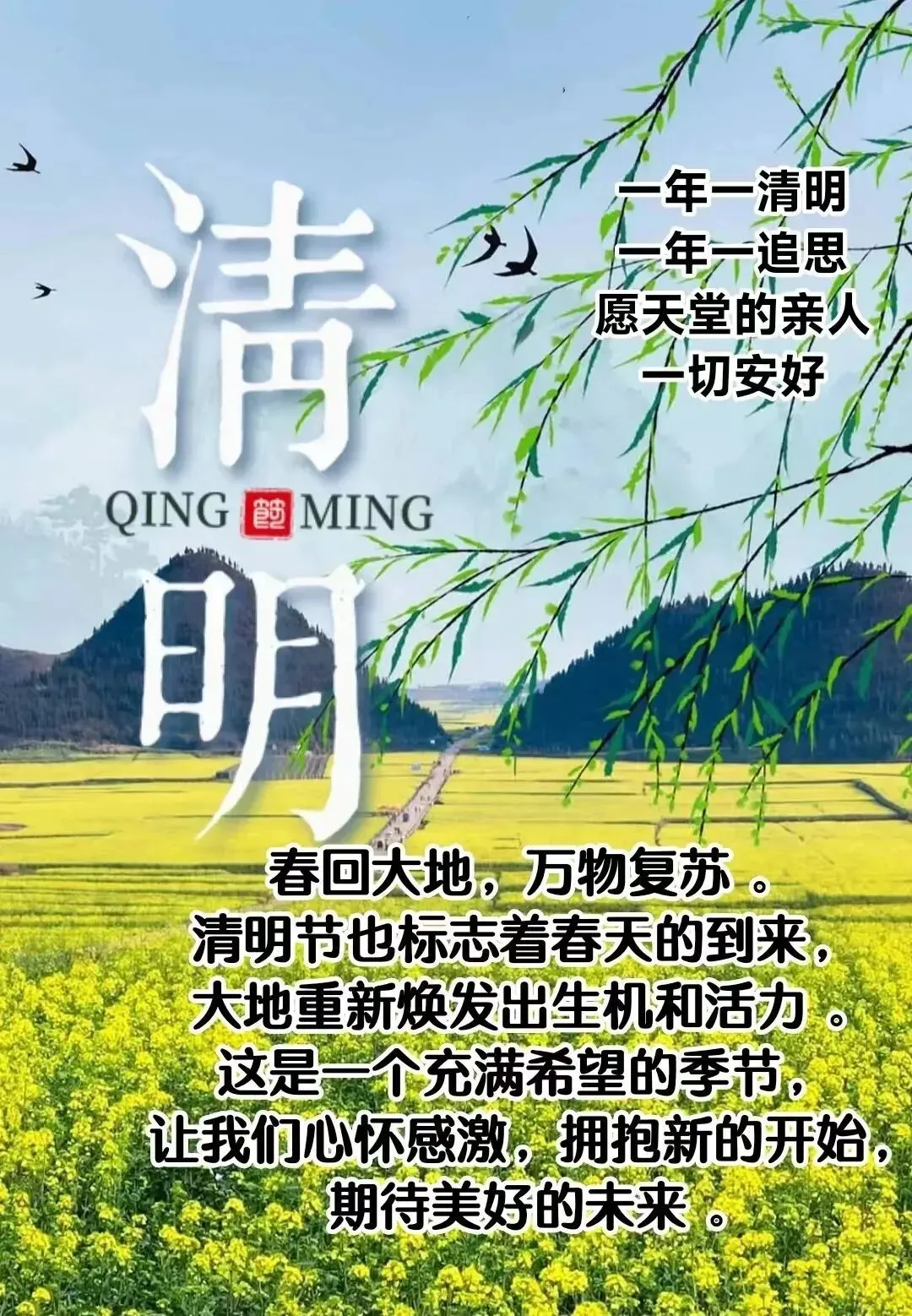 清明时节草木青,缅怀先人寄深情。愿远去之人安息,在世之人安康,守住健康、珍惜团圆,家和人安、岁月清宁,安稳度过每一天,早安!