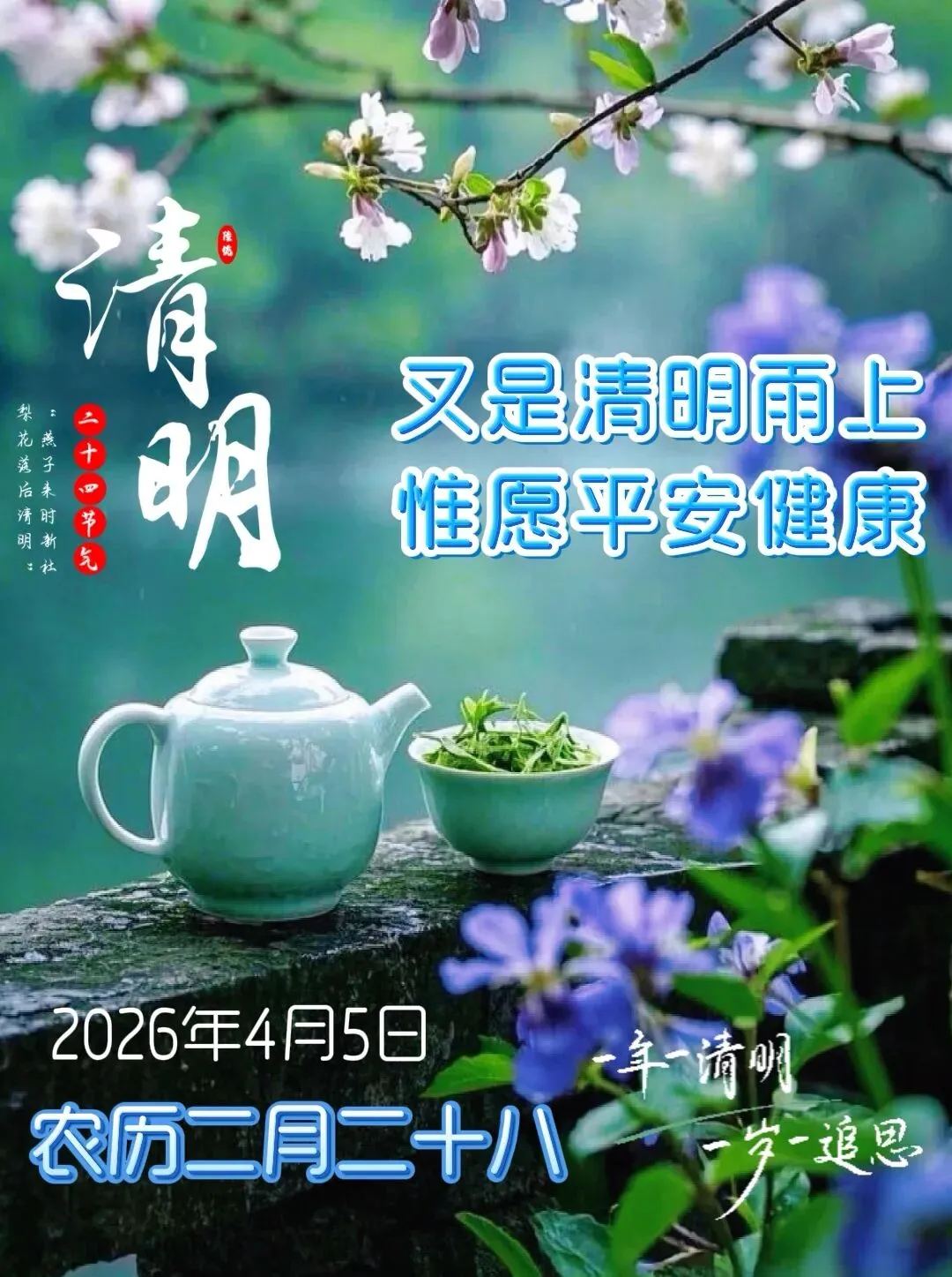 清明雨落寄清思,春风送暖启新程。不念过往烦忧,唯愿当下安暖,岁岁皆平安,年年皆顺遂,四季常安康。