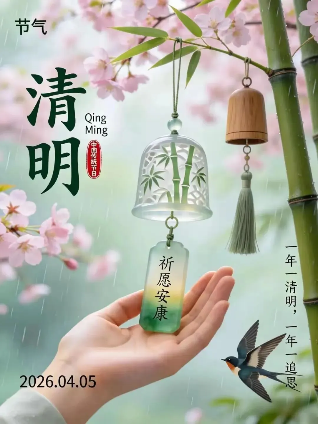 一岁一清明,一念一安念,心底藏眷凝作清芬远思。念而不扰,愿清明风软拂尘念,雨柔润心田、安牵怀;时光清简,雨润清和,惟愿岁岁安澜,万事皆宁。