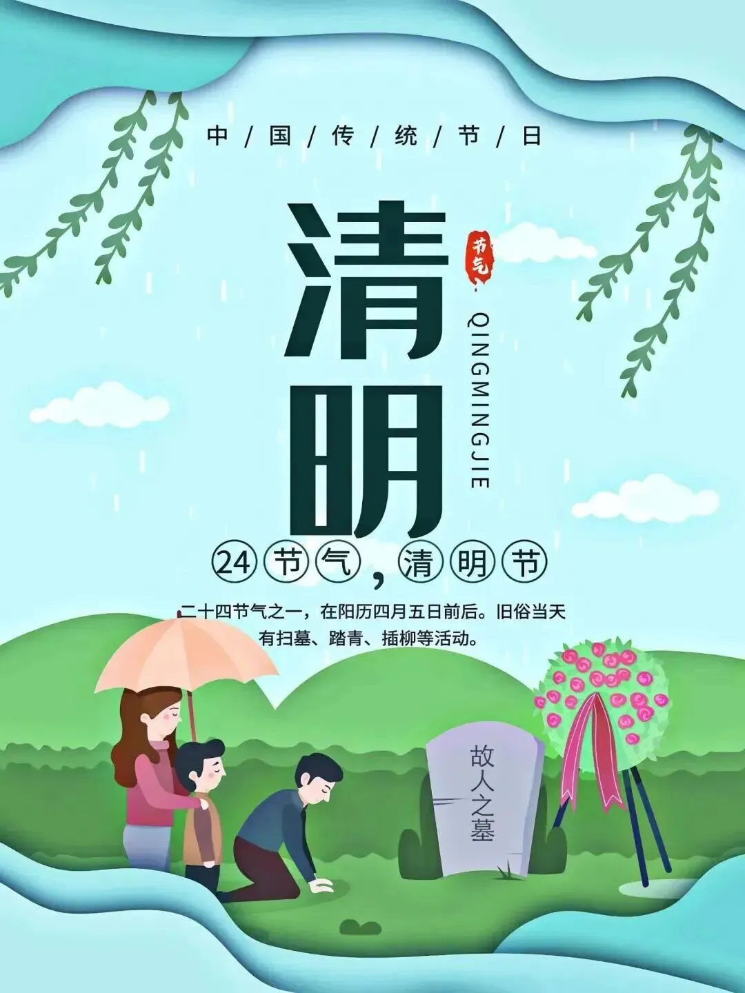 清明,是缅怀的时节,旧时的美好,铭记心田,忧伤的过往,莫再纠缠;清明,是踏青的时节,快乐的心情,四处寻遍,烦恼的思绪,抛向云端;清明,是插柳的时节,幸福的柳枝,插满家园,美好的运道,源源不断;清明时节,祝你福气满枝芽,好运在勃发!