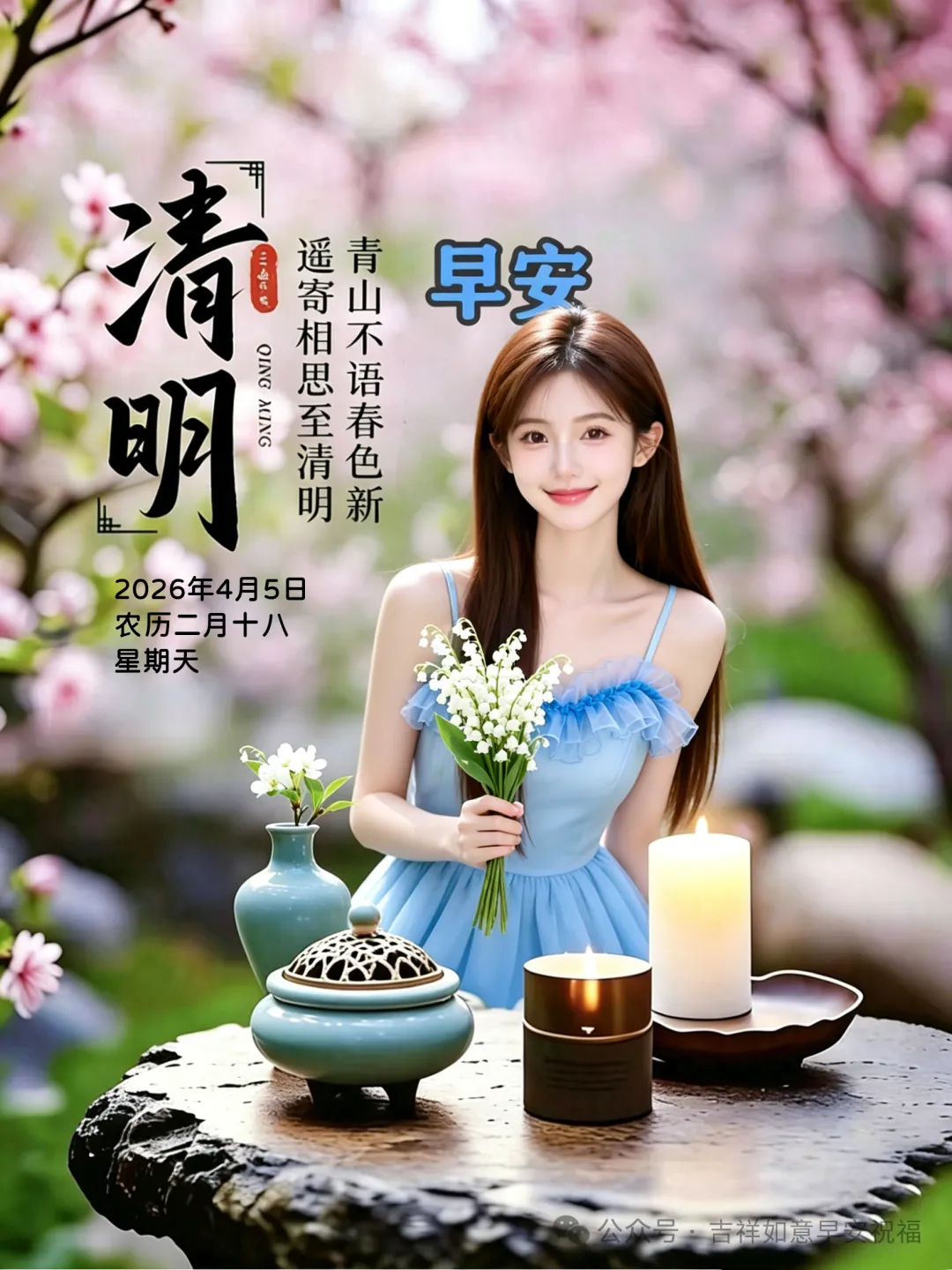🍵 一盏清茶敬故人,满怀春色赠余生。清明节,不仅仅是祭奠的形式,更是教我们要懂得珍惜当下的每时每刻。晨起问候,愿您所求皆成真,所行皆顺遂,日子如意常青。