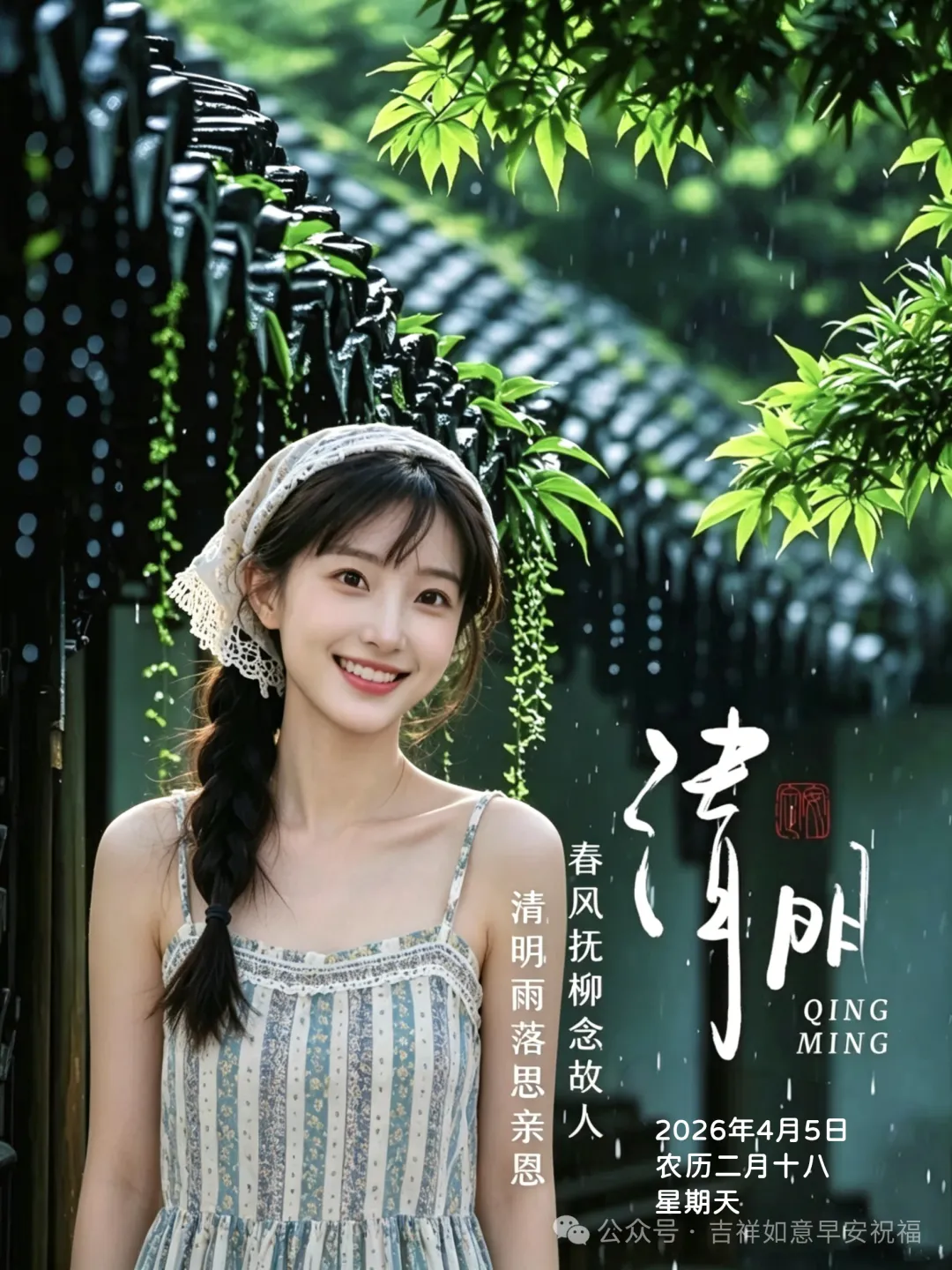 那飘飘的雨丝淅沥淅沥,那夏前的鸣蝉低唱不休,那雨后的青草气味弥漫,那遍野的映山红争相开放。又是一年清明来到,送你问候,愿你顺遂。