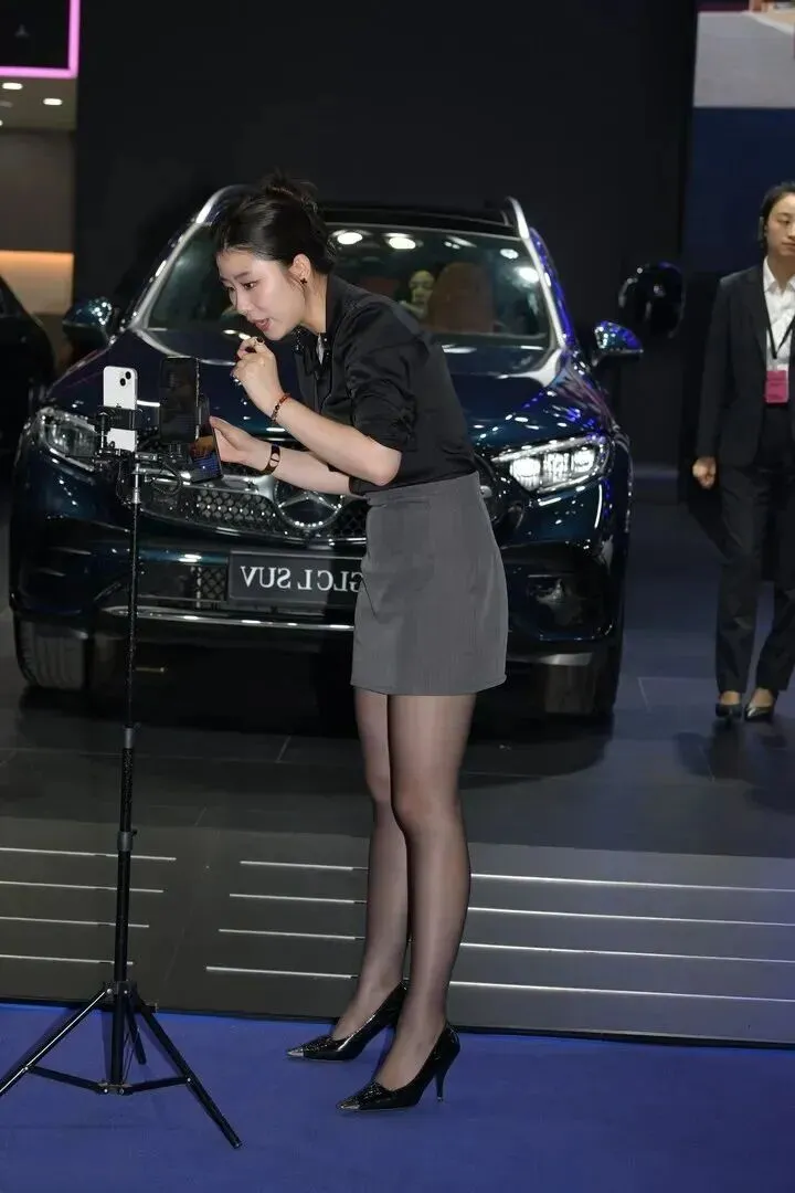 最后她弯腰展示车内饰,双机位拍摄清楚。黑白灰颜色一直以来都被人们所喜爱,它的缎面衬衣和裙子上体现出的质感也一直为人称道。尖头高跟加黑丝,女人味不经意间就流露出来了,并没有刻意为之。
