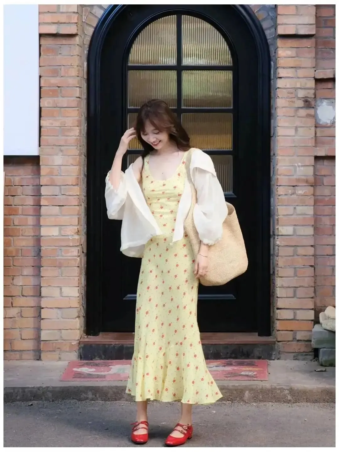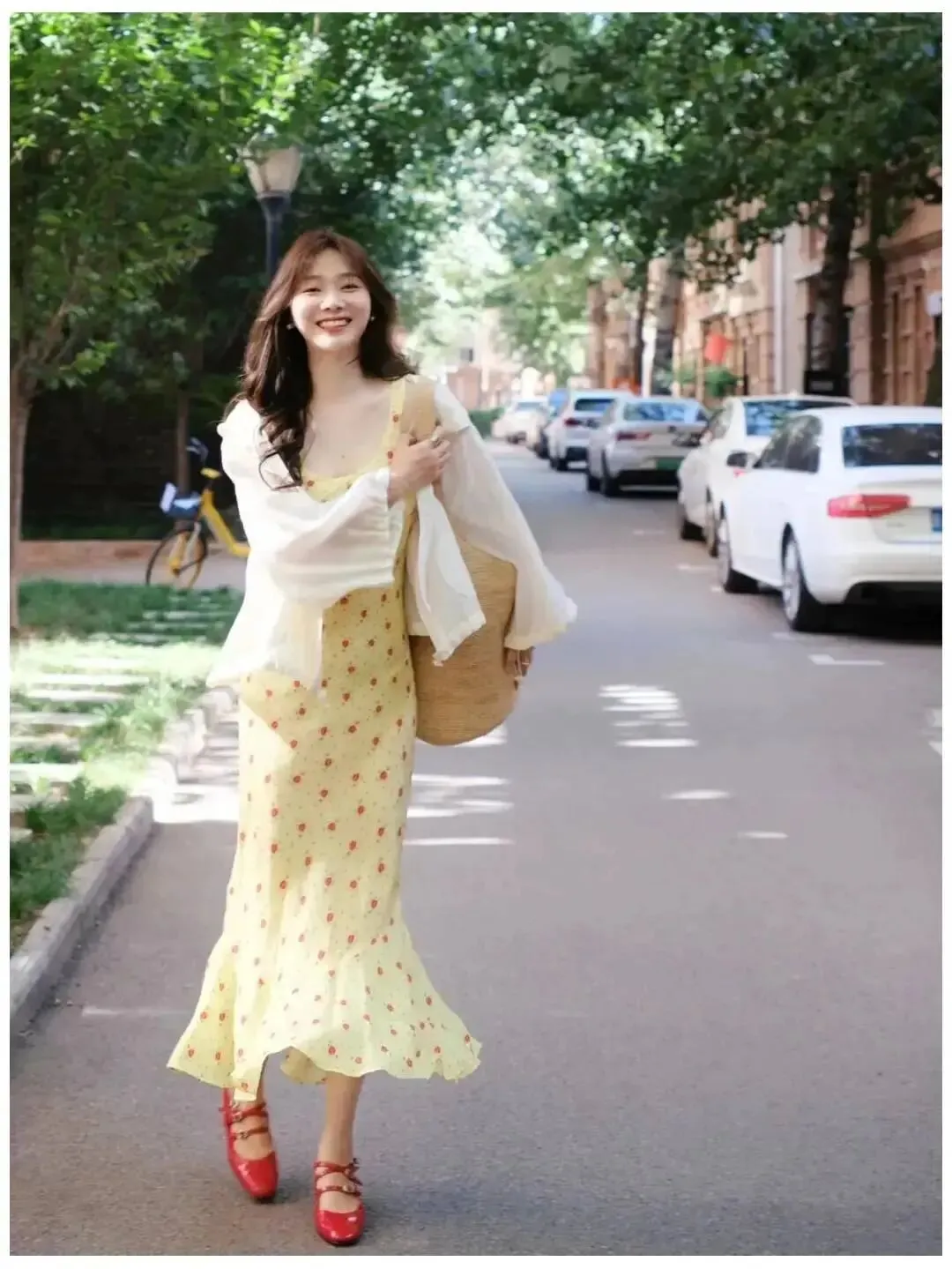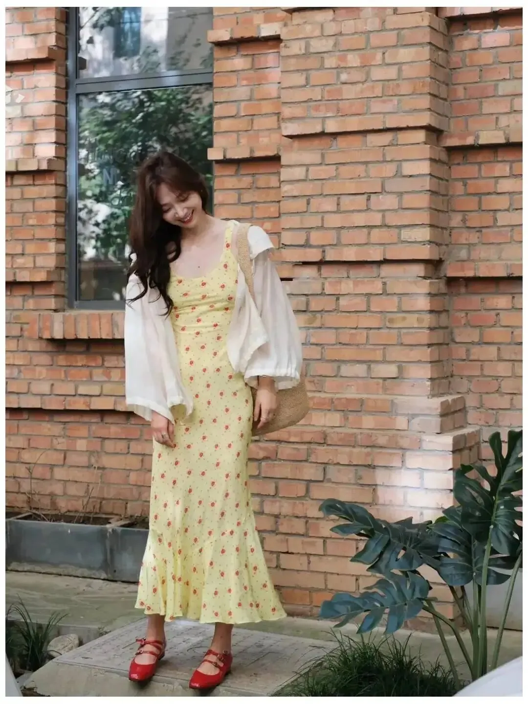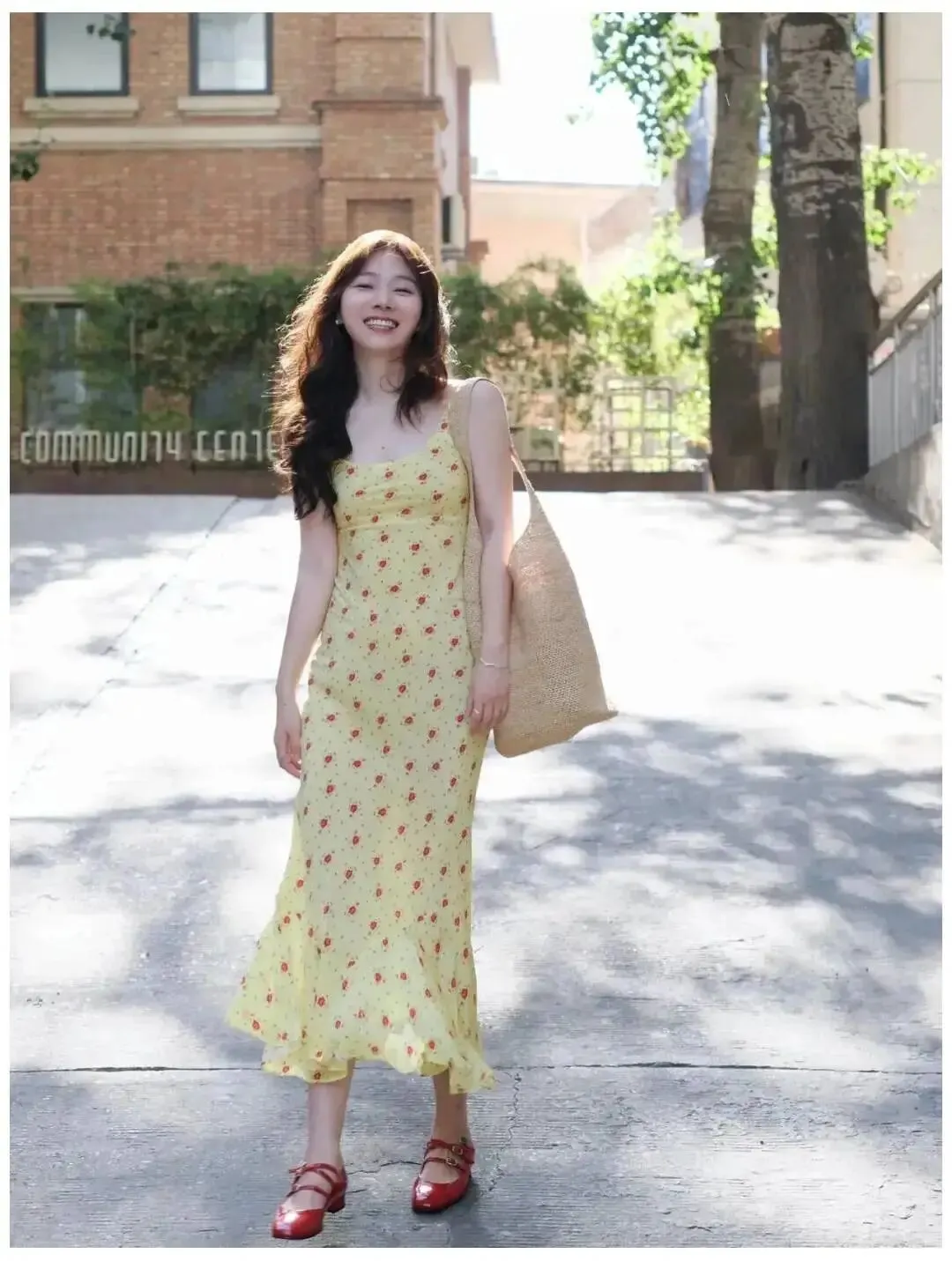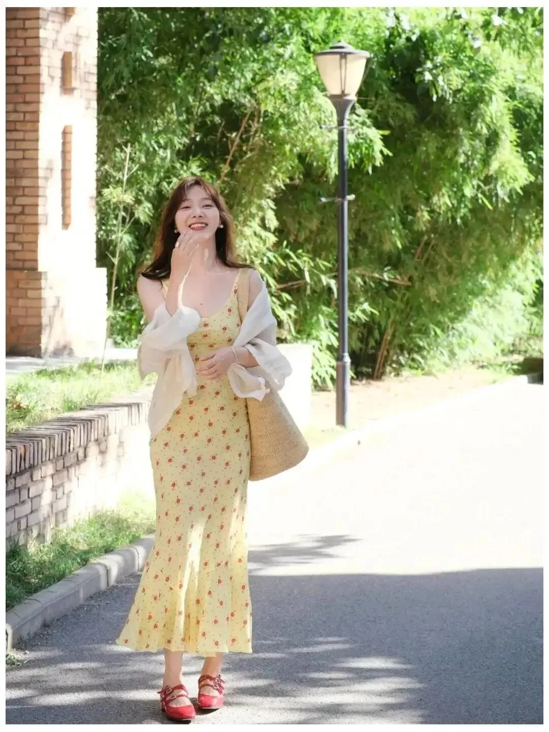 这个动作很稳,也最不容易翻车,重点不是走得快,是慢一点,脚步轻一点,让裙摆自己带出流动感,拍的人可以连拍,你就像平时散步那样往前走,眼睛看镜头,笑得大方一点,照片马上就亮了,这种画面很适合晴天,也很适合花墙和街边,整个人会显得很有精神