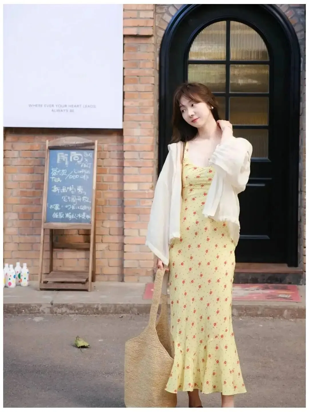为什么有些人一拍照就像在摆拍,因为身上没有东西可以借力,动作全靠硬凹,这时一个小包就很重要,手里提着包,另一只手轻轻碰一下脖子,头歪一点,看向旁边,画面马上就会自然很多,这种姿势很适合街拍,也适合咖啡店门口,感觉像你刚走到这里,被随手拍下,生活气一下就有了