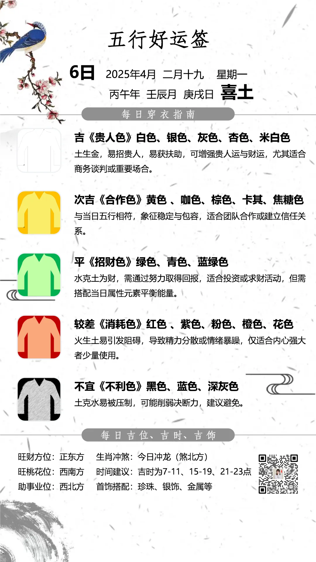 当前位置:首页>美女资讯>4月6日好运签(免费赠壁纸)|财富、桃花、事业、穿衣、吉时、首饰