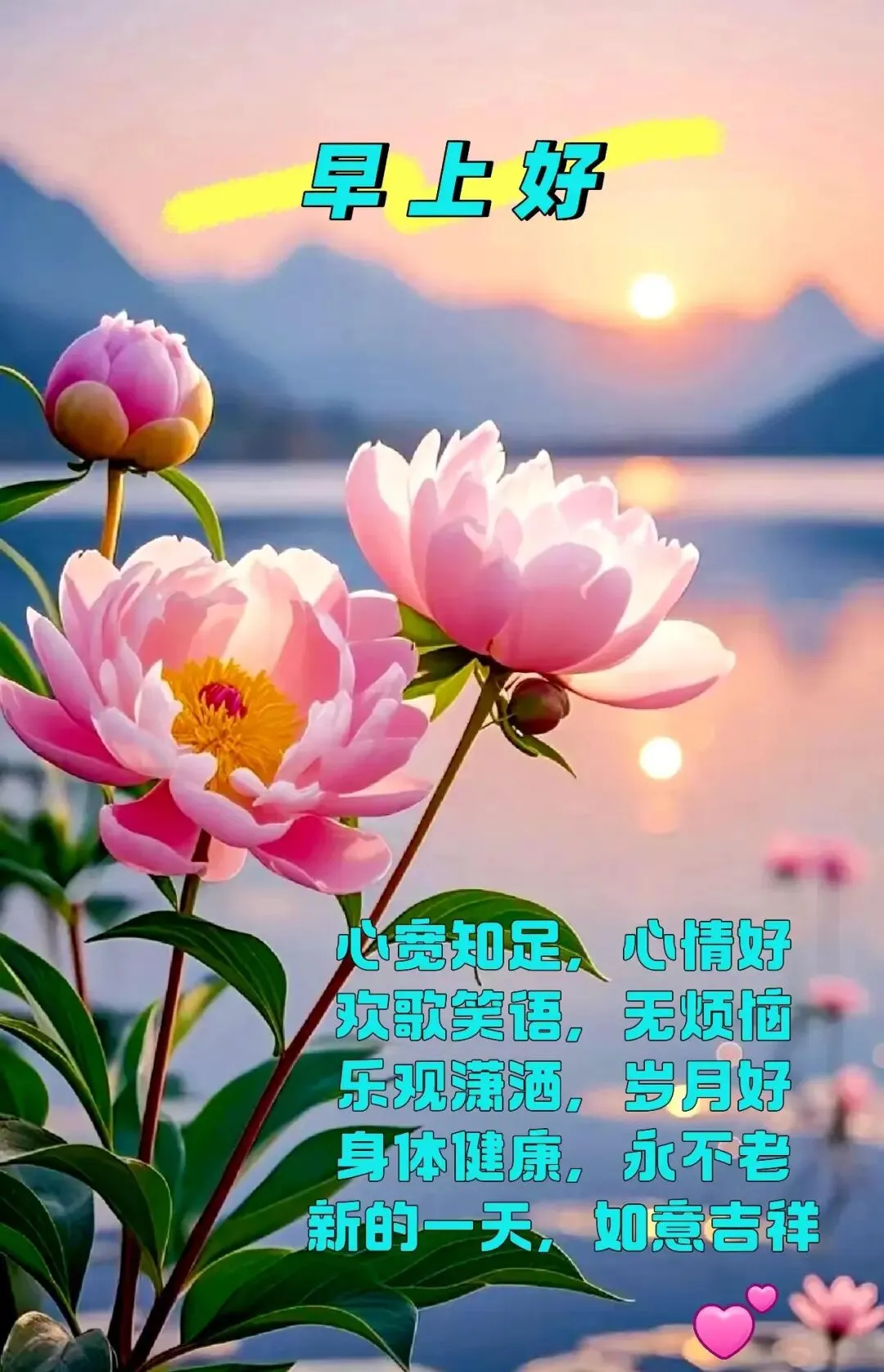 曙光至,悠闲享,健康身体需保养;抛却忧,忘却恼,莫让心绪添纷扰;展笑颜,享悠然,轻松自在乐无边;愿舒心,愿开怀,幸福喜悦满心怀。🌹🌺🤝🍎🙏🎉