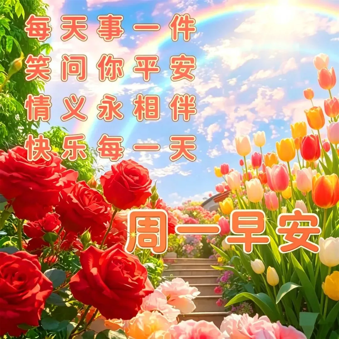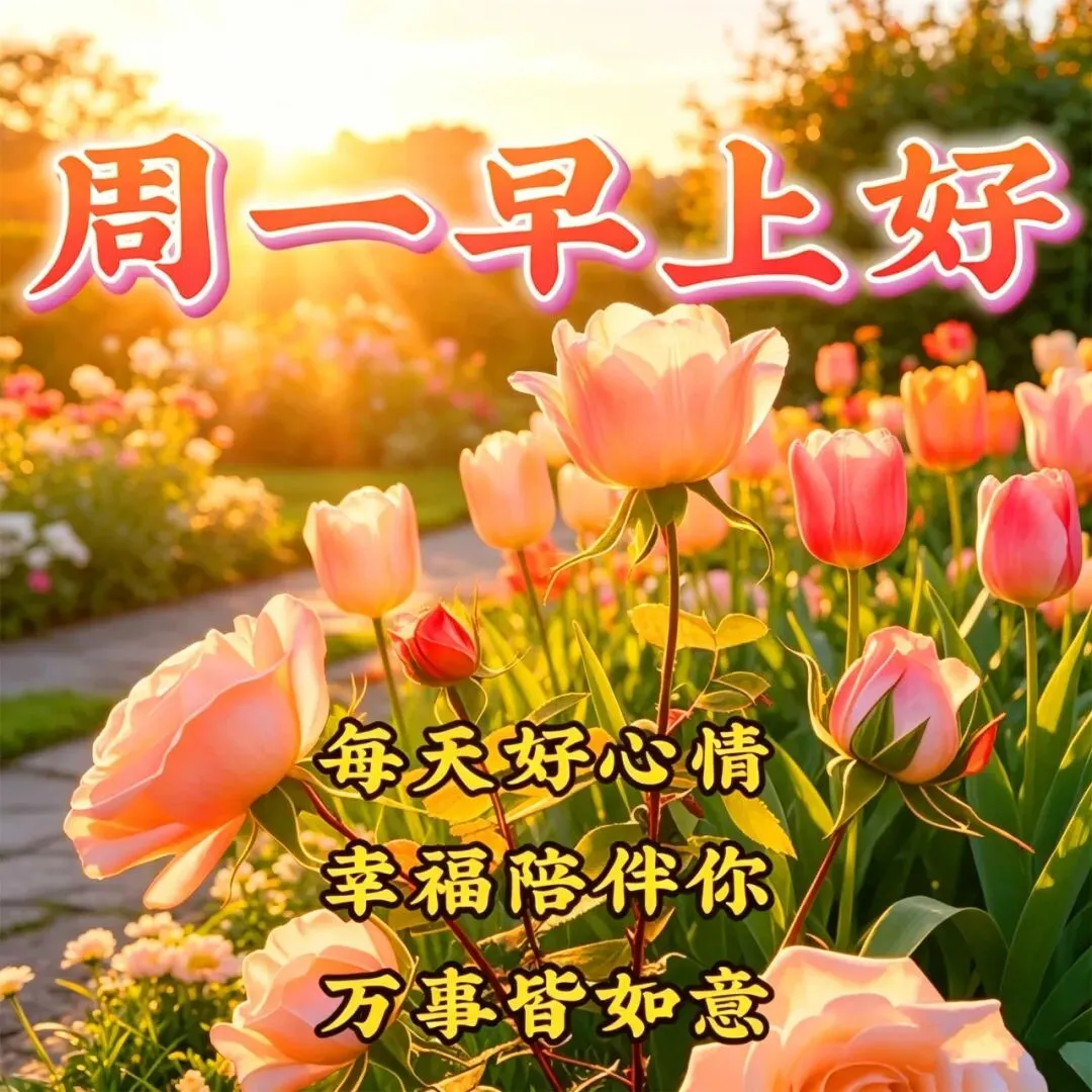 快乐日日在,幸福天天来,关心时时有,问候充满爱。愿时光不老,咱们都好,平安喜乐,万事胜意,周一早上好!