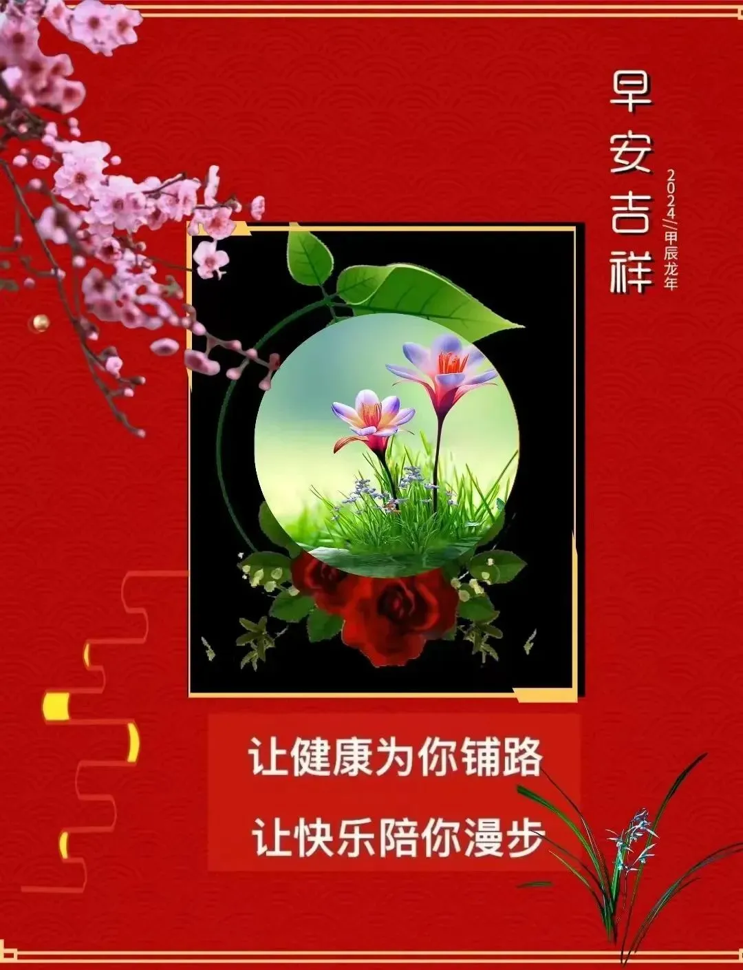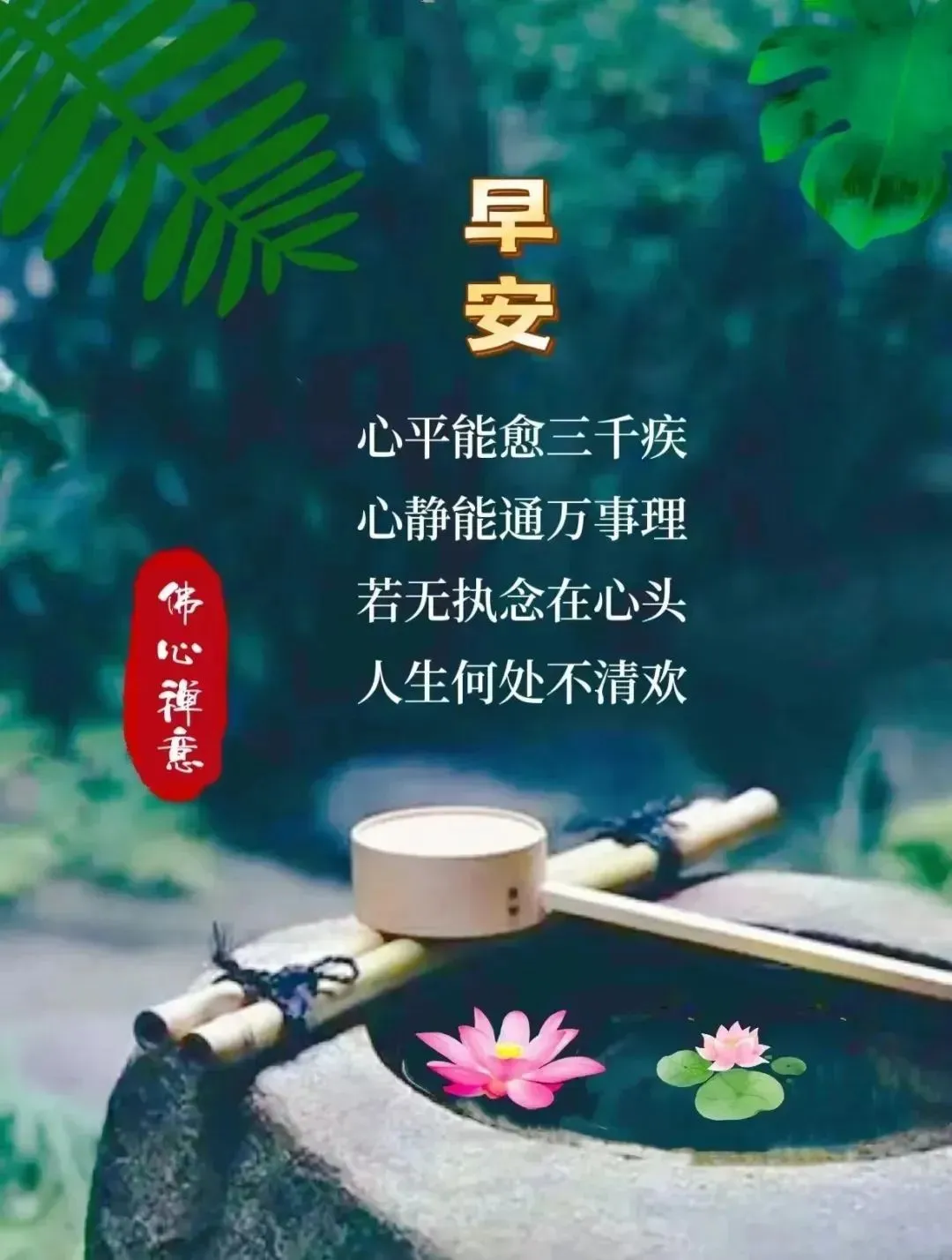 15,健康是金,金不换,开心是财,财不断。善良是福,福如海,珍惜是宝,宝如山。知足常乐,乐满园,问候是情,情如天。新的一天,吉祥安康!