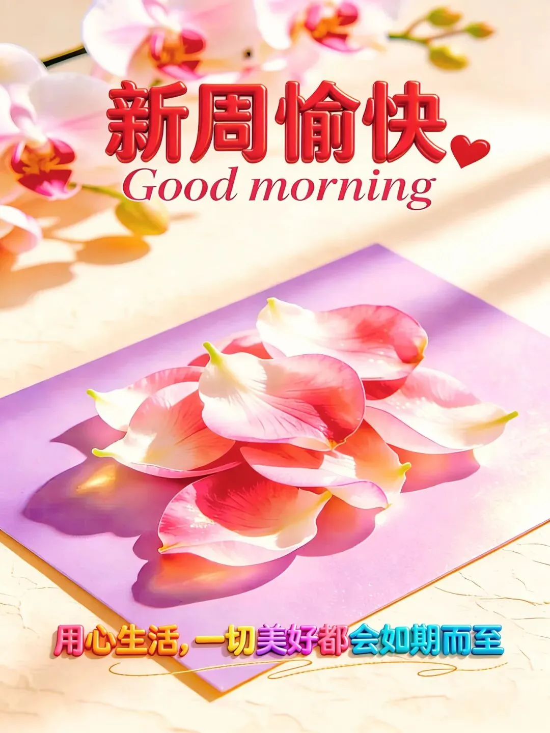4月6日浪漫唯美图片温馨祝福语!新周晨起问声安,胜似见面共进餐,相互祝福就是缘,海角天涯心相连!