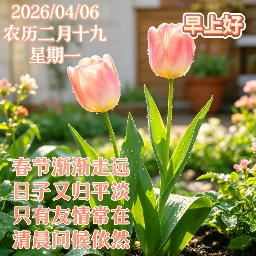 淡淡早安语,深深祝福情,新日迎福气,晨起接美好。愿你人随春好,春与人宜,时时刻刻皆幸福,晨安~