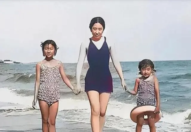 细瞧那会儿的沙滩是真干净,海边没有太多闲杂人,几乎全是自家人耍笑闹腾,王光美一身深色泳衣,样式利落,线条流畅,整个人气质一下立住了,身边的女儿小胳膊搭在她手上,那个笑劲是一逮一个准,这种家庭的松弛状态,老照里其实很稀有。