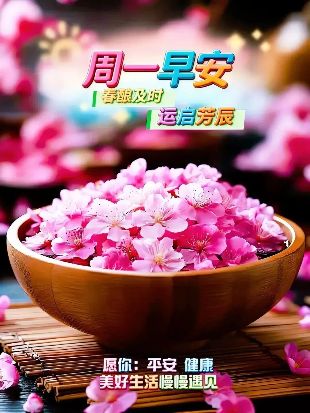 🌺🌸清晨,装满我所有的祝福,把好运、健康、快乐、平安送给大家!💐🦋愿各位朋友每天都阳光灿烂,开心快乐,幸福美满。🎄🍑家人们早上好!🍒🌟新周愉快!🍒🌟