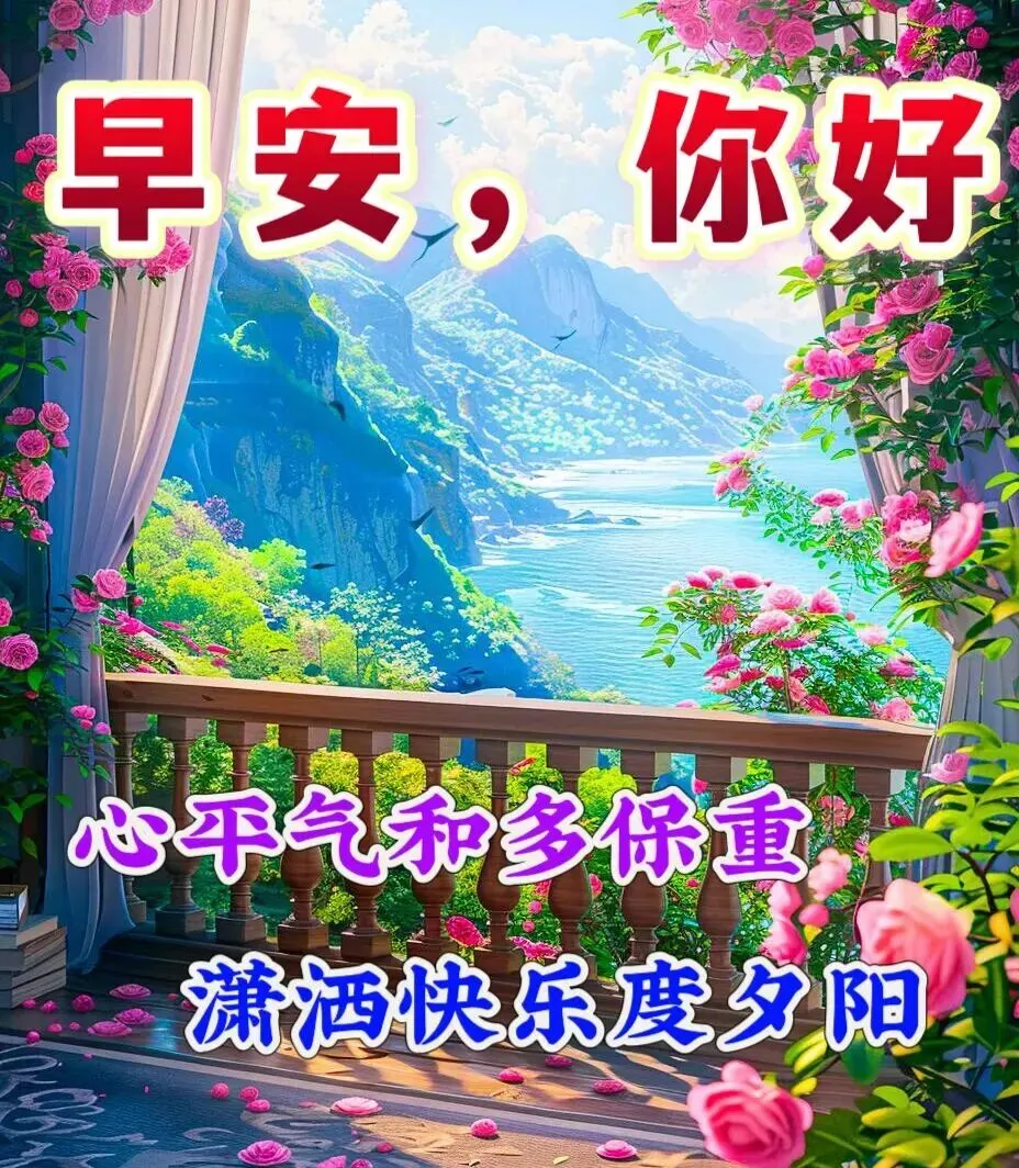 亲情如山,好友如水,依山傍水,人生完美。🌻🌹牵挂是情,祝福是意,每天问候,心甜如蜜。💧💐早上好 !忘掉年龄糊涂过, 寻找顺心天天乐, 🌹🌾每天都是新起点, 童心伴随百岁活, 清晨送你三件宝:幸福、 快乐、 身体好。早安吉祥!🧡🌈