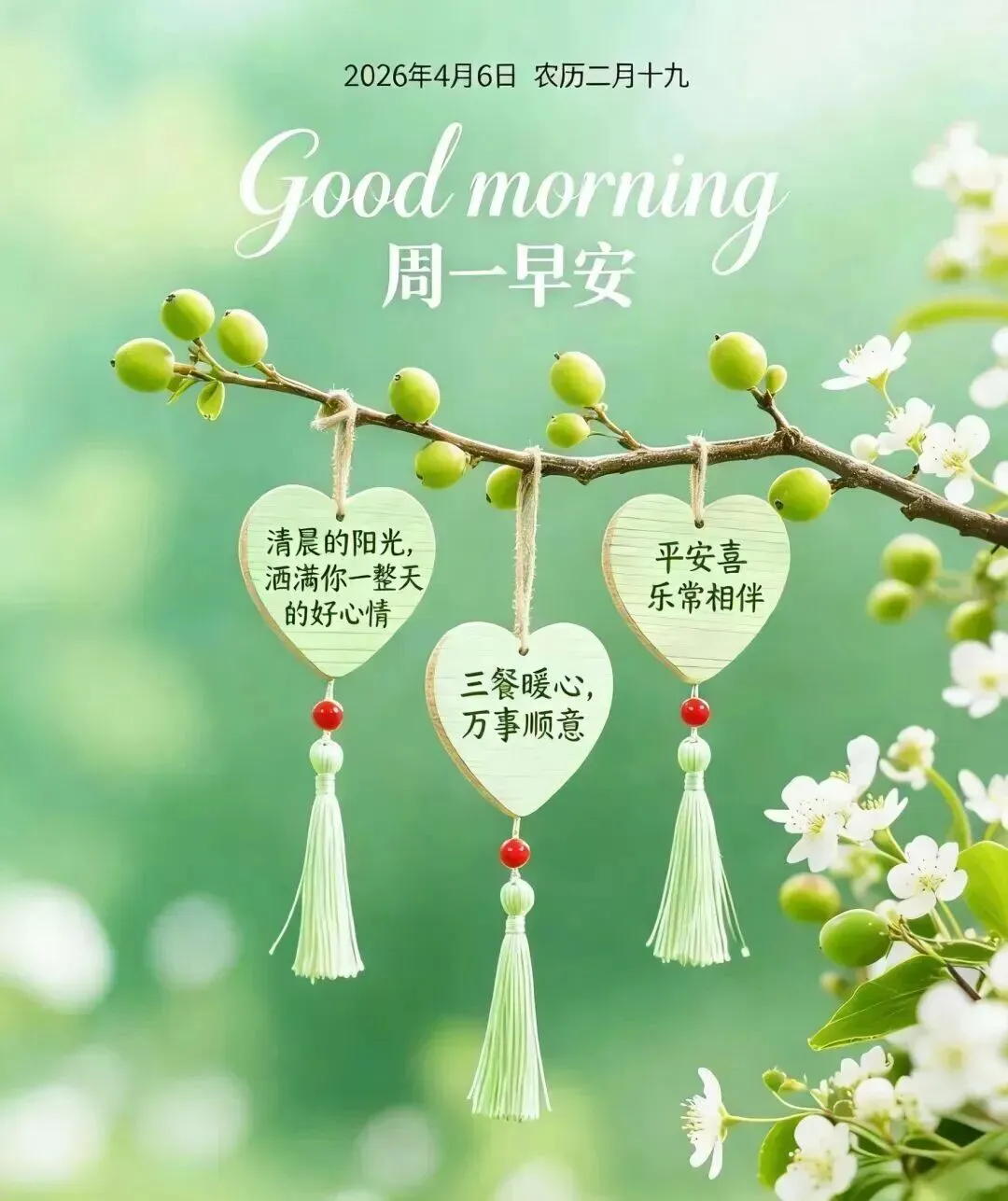 春光正好,时光安然。愿我们:快乐朝朝拥有,安康久久相守,顺心日日相伴,幸福年年不离。每天万事顺意,一生安稳吉祥!早上好!㊗️🍒💐🌸