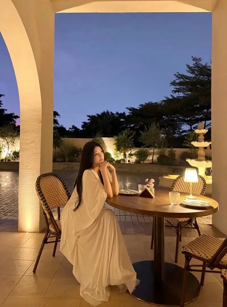 闺蜜聚会或者家庭聚餐选择宽松米白色长裙最恰当。蝙蝠袖设计随性又藏肉,宽松版型不会挑选身材。坐在藤编椅子上,在夜色中整个人都带着一种慵懒温馨的感觉,舒服又漂亮。