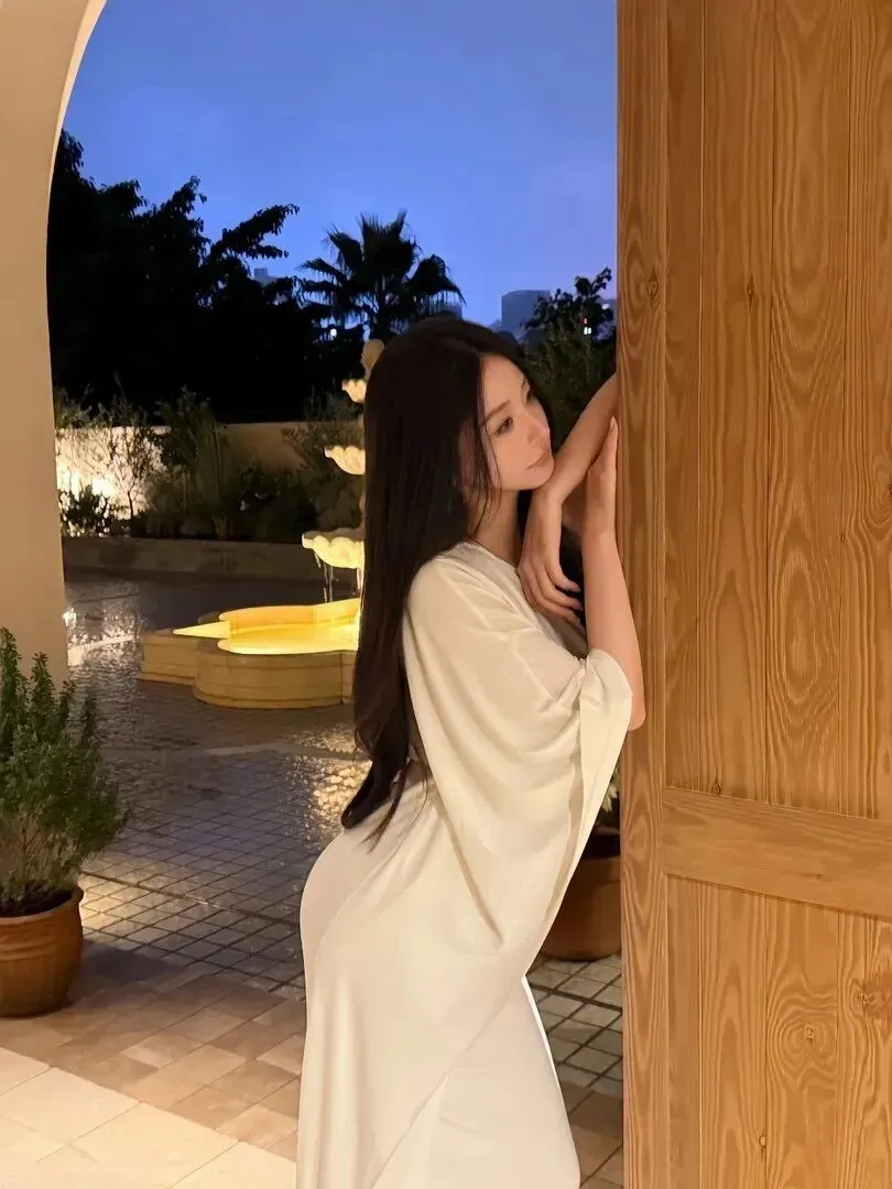 最后一件丝绸睡袍风长裙把慵懒发挥到了极致。丝绸质地高级显贵,蝙蝠袖遮肉显瘦,倚在立柱上就像刚刚沐浴过一样舒适怡人的美艳美人。夜色中那种不需要花费太大力气的放松感,拍照不用修图。