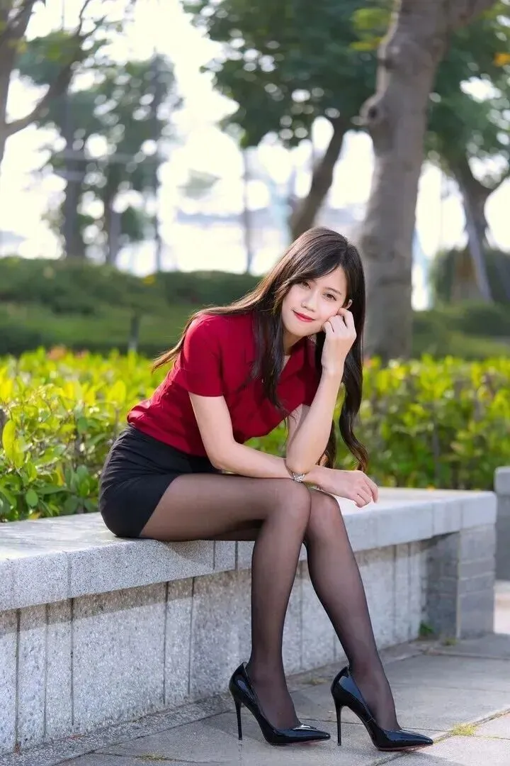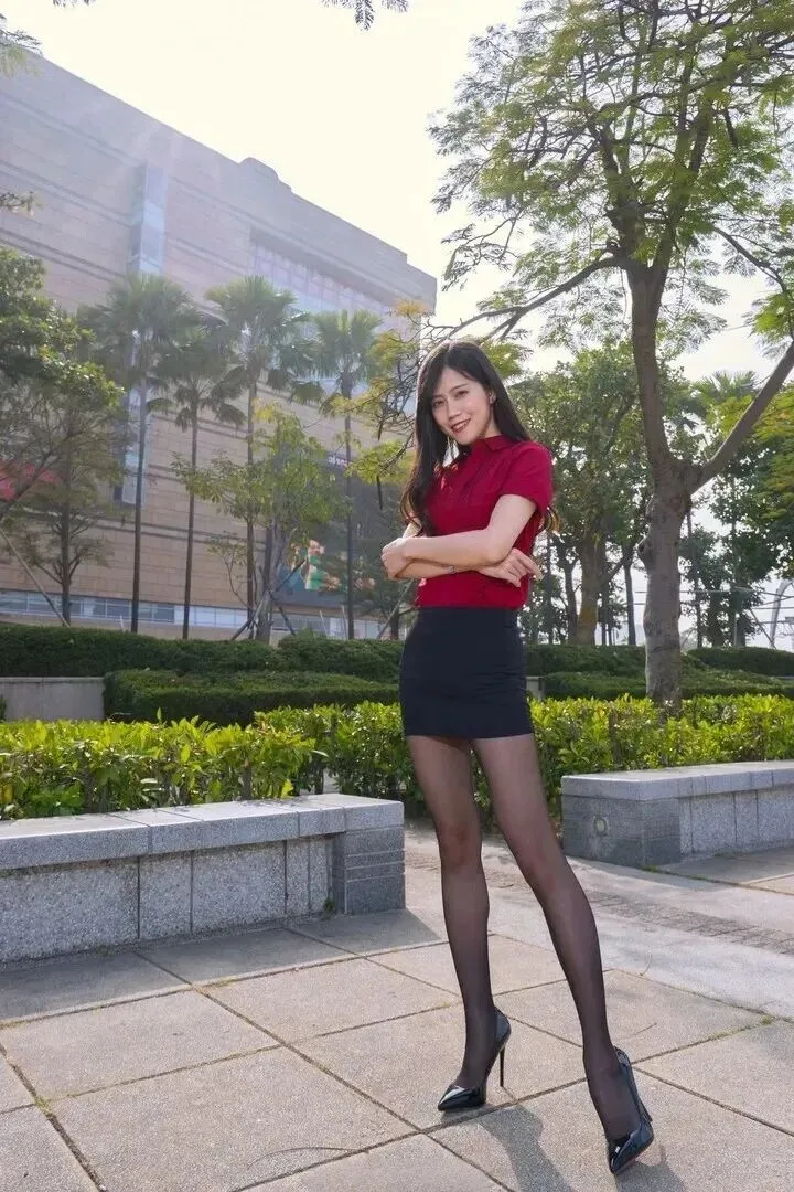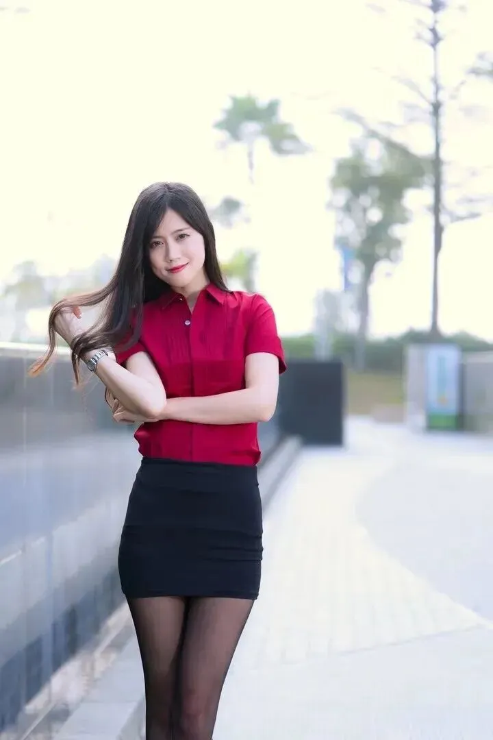 黑色高腰包臀裙就是这套的中心。高腰设计使腿显得非常长,立马拉长了下肢的比值。包臀的剪裁表现女性曲线,不会太紧绷,舒适度最高。裙长到大腿中部,不夸张不显瘦。