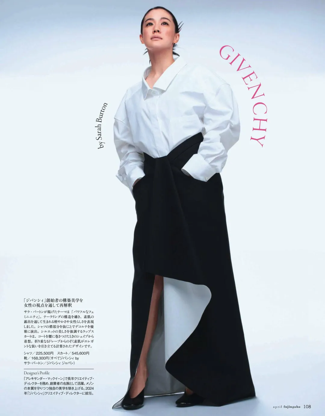 白衬衫+不规则黑半裙,苍井优完美诠释GIVENCHY的优雅美学!Sarah Burton以纪梵希创始美学为基础,从女性视角解构优雅,用不对称剪裁、利落线条,打造出兼具力量感与柔美的造型,是春日通勤、正式场合的高级感穿搭范本。
