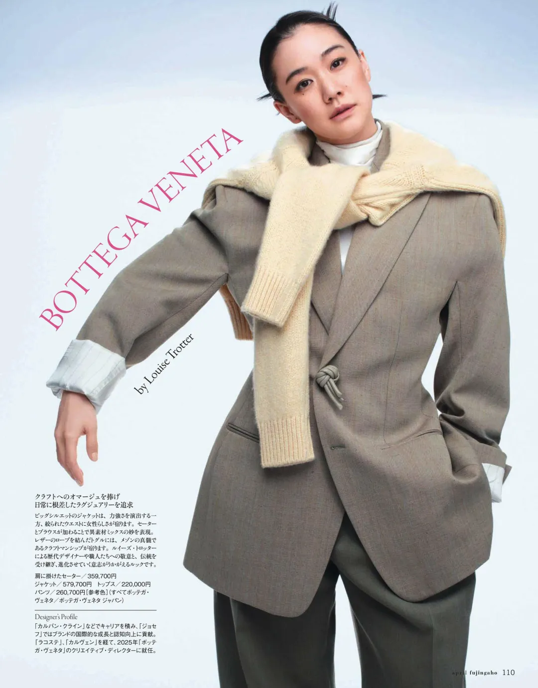 浅棕西装+米白针织披肩,苍井优完美诠释BV的松弛感!Louise Trotter掌舵后,BV以「 Craft 」为核心,用软糯的针织、利落的西装,打造出日常奢雅的造型,松弛感拉满,是春日通勤、日常穿搭的绝佳选择。