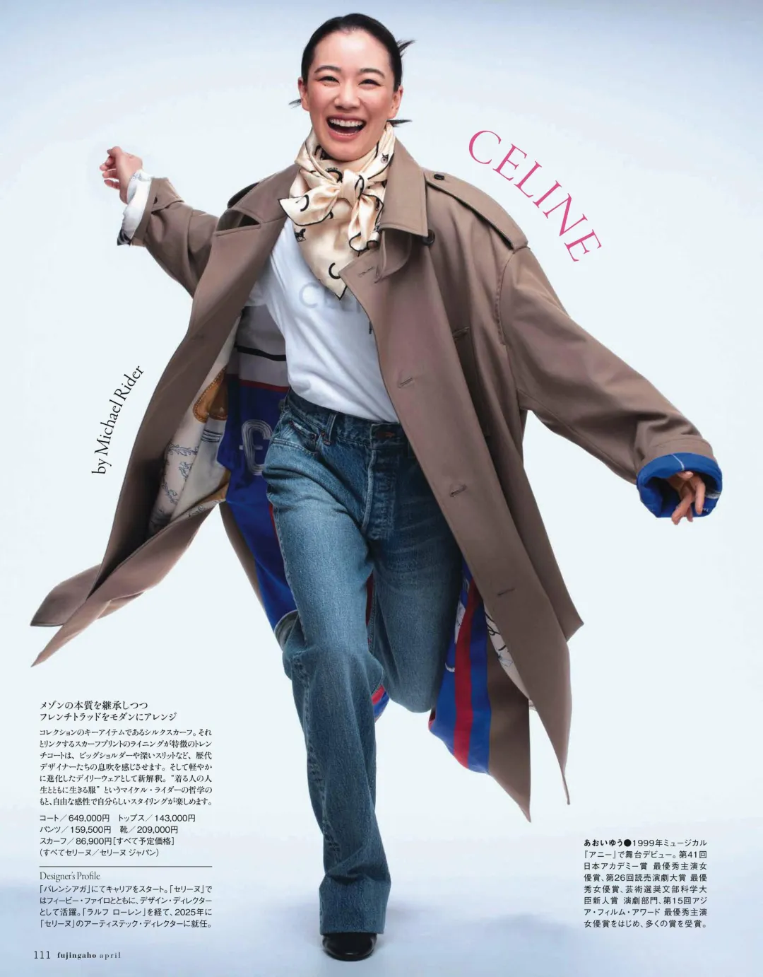卡其色风衣+牛仔裤,苍井优演绎CELINE的复古休闲风!Michael Rider掌舵后,CELINE以「巴黎的灵魂」为核心,用宽松风衣、复古牛仔裤,打造出自由随性的造型,苍井优的笑容更是将造型的活力感拉满,是春日出游、日常穿搭的范本。