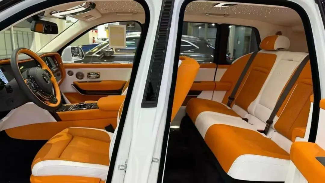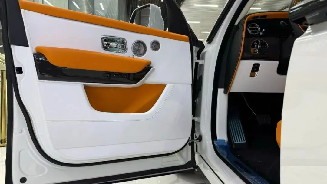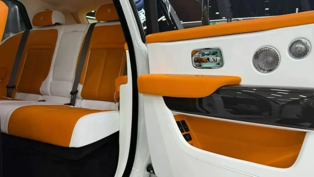 劳斯莱斯库里南座椅设计彰显劳斯莱斯汽车的品质与工艺,简洁而现代的马蹄铁图案,强调座椅的支撑力。整体椅背由一整张皮料精心塑形,打造出极为立体的表面。