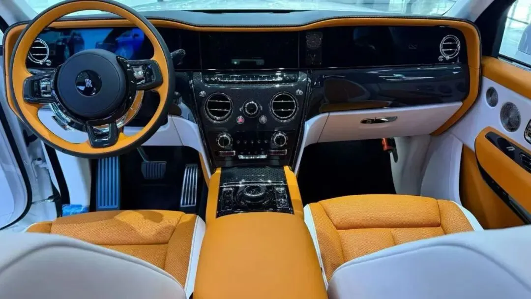 劳斯莱斯库里南内饰方面将极尽奢华,用真皮搭配实木以及金属装饰,整体设计与幻影类似,但方向盘更厚实,但是体型缩小。劳斯莱斯表示库里南是一款以驾驶为导向的车型,更侧重驾驶体验。全新的全液晶仪表盘采用三圆仪表设计,辅以虚拟表盘和指针。