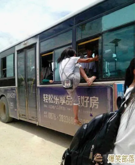 尽管车上已经人满了,但是也阻挡不了女汉纸上车的心情!