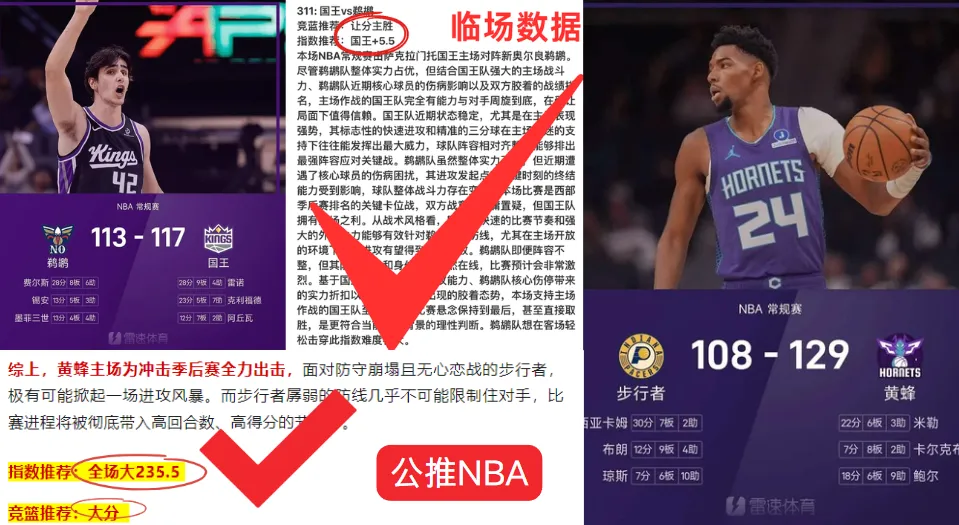 ✅✅黄蜂129-108步行者,大格局远超比分,稳稳拿捏。