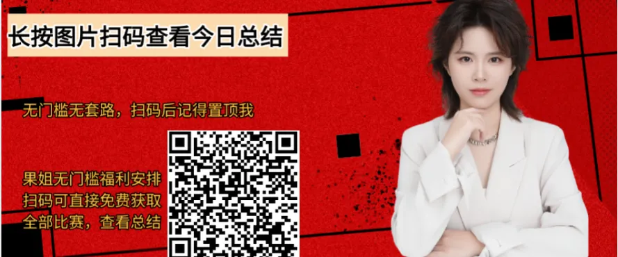 今日比赛场次的前瞻预测,我都把它们放在下方《果姐赛场解读》中,大家届时直接点击获取即可!