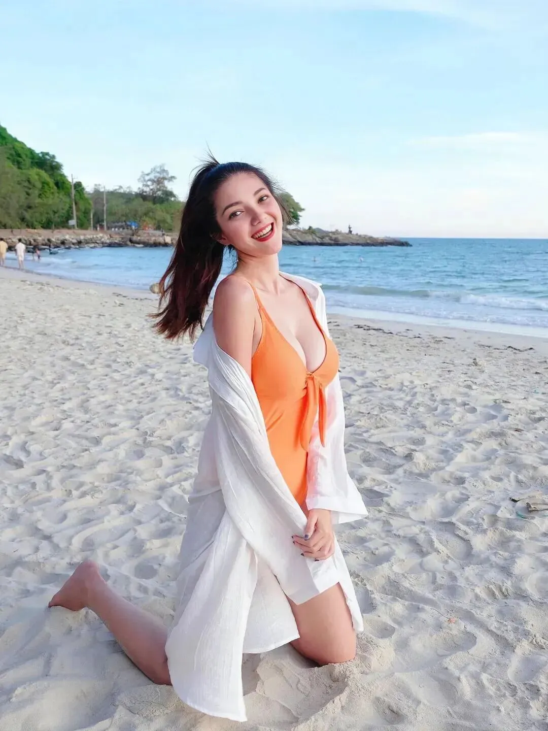 少女写真|夏日海滩,橘色泳衣的浪漫奔赴