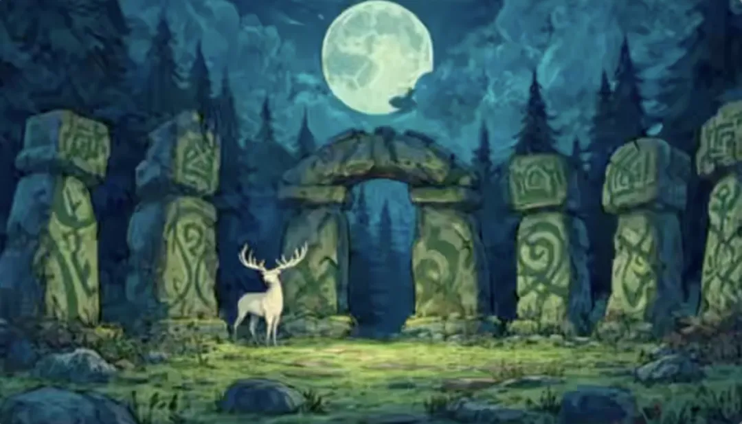 蓝月之下的森林深处,有一个巨石阵。是精灵之门的入口,人们在里面进行仪式迎接女神与男神,并且在其中获得神谕~