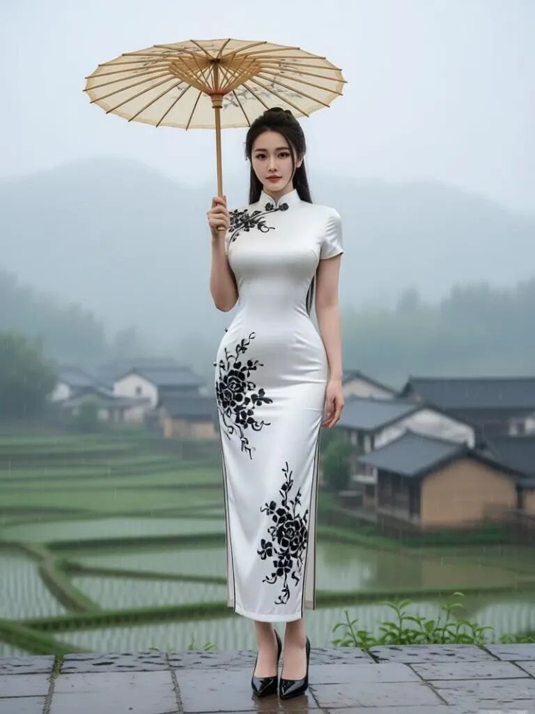 当前位置:首页>美女资讯>白缎黑花旗袍!江南烟雨,东方女神风情万种