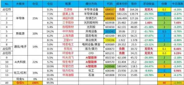当前持仓结构:(当天的主角点亮她!)