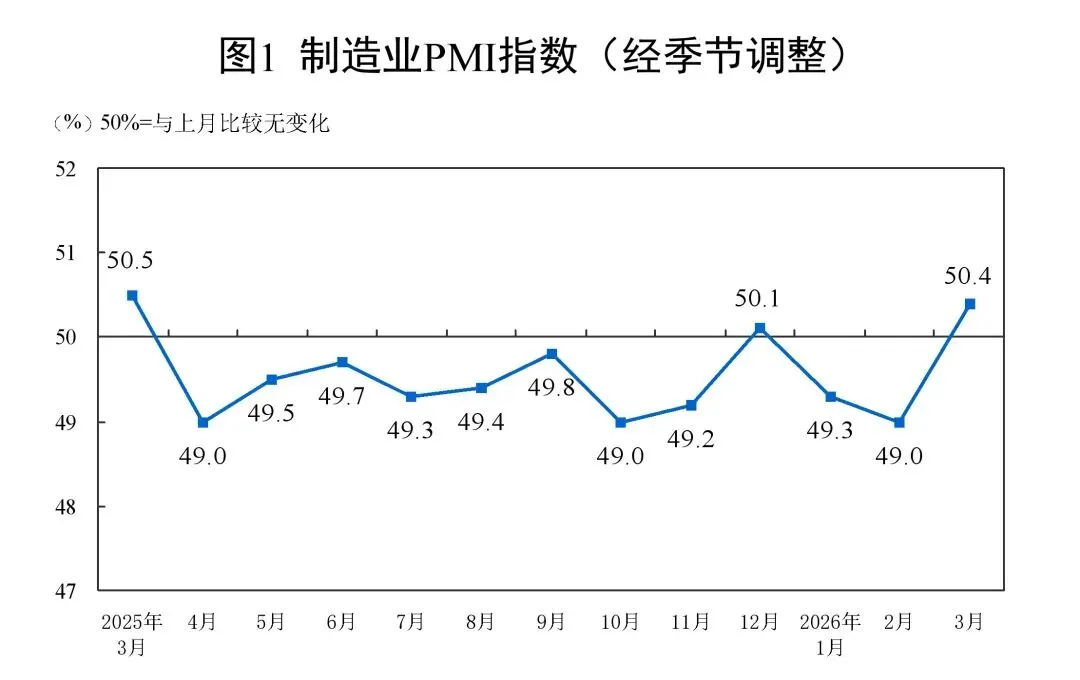 制造业 PMI:50.4%,环比 +1.4%