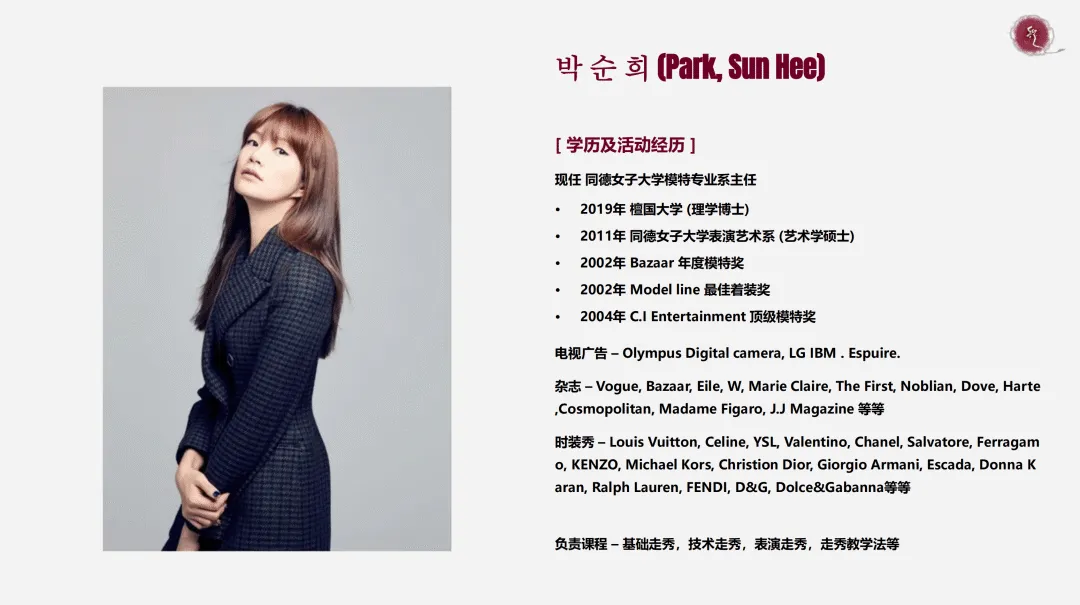 • 成就:韩国顶级模特,多次登上首尔时装周,活跃于综艺、主持领域