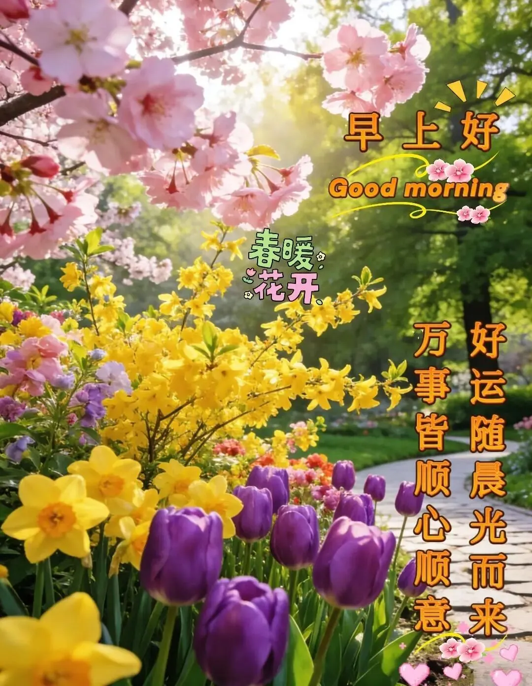 🌷☀️✨早安,我亲爱的朋友!一缕温馨问候,乘着清风翩然至你身旁。愿你的日子如繁花般绚烂,笑容如暖阳般和煦,好好珍惜每一刻,快乐肆意飞扬。🌸😃🎊