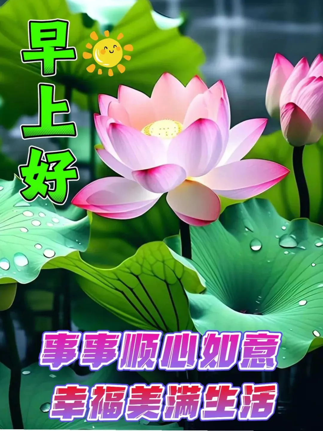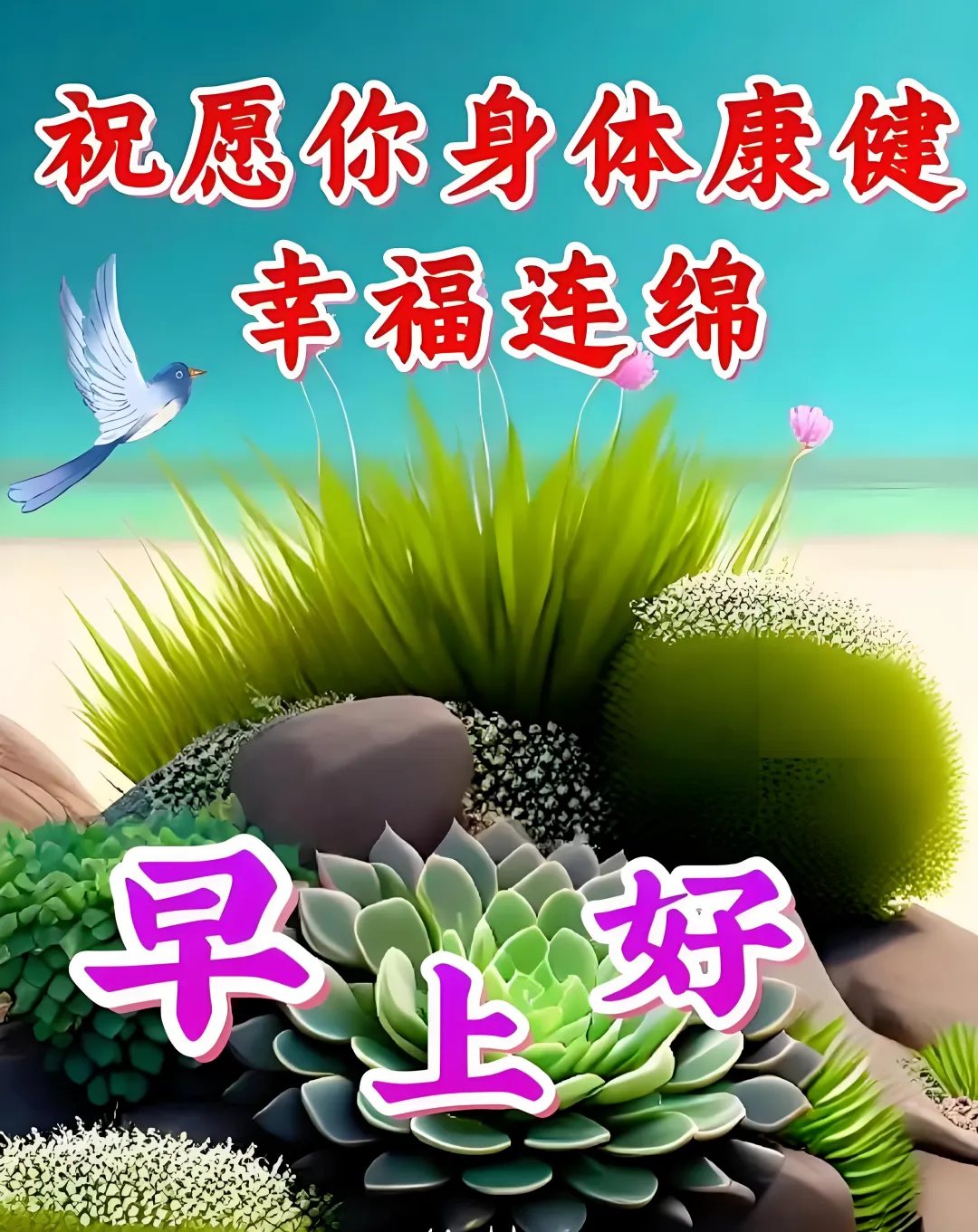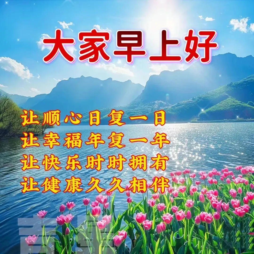 🍉相聚清晨,送上问候,相互祝福。🌊新的的一天,忘记烦恼,迎接美好!🎄伴着晨曦,送上我的祝福:🍀愿你笑容甜甜,好运连连,🌷福气满满!吉祥安康!💕