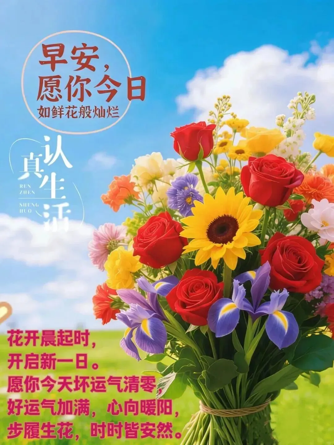 人生不求十全十美,只求无怨无悔,不求事事顺心,只求每天开心,不求人人喜欢,只求真心陪伴,不求大富大贵,只求活得不累,请好好珍惜每一个今天,早安!