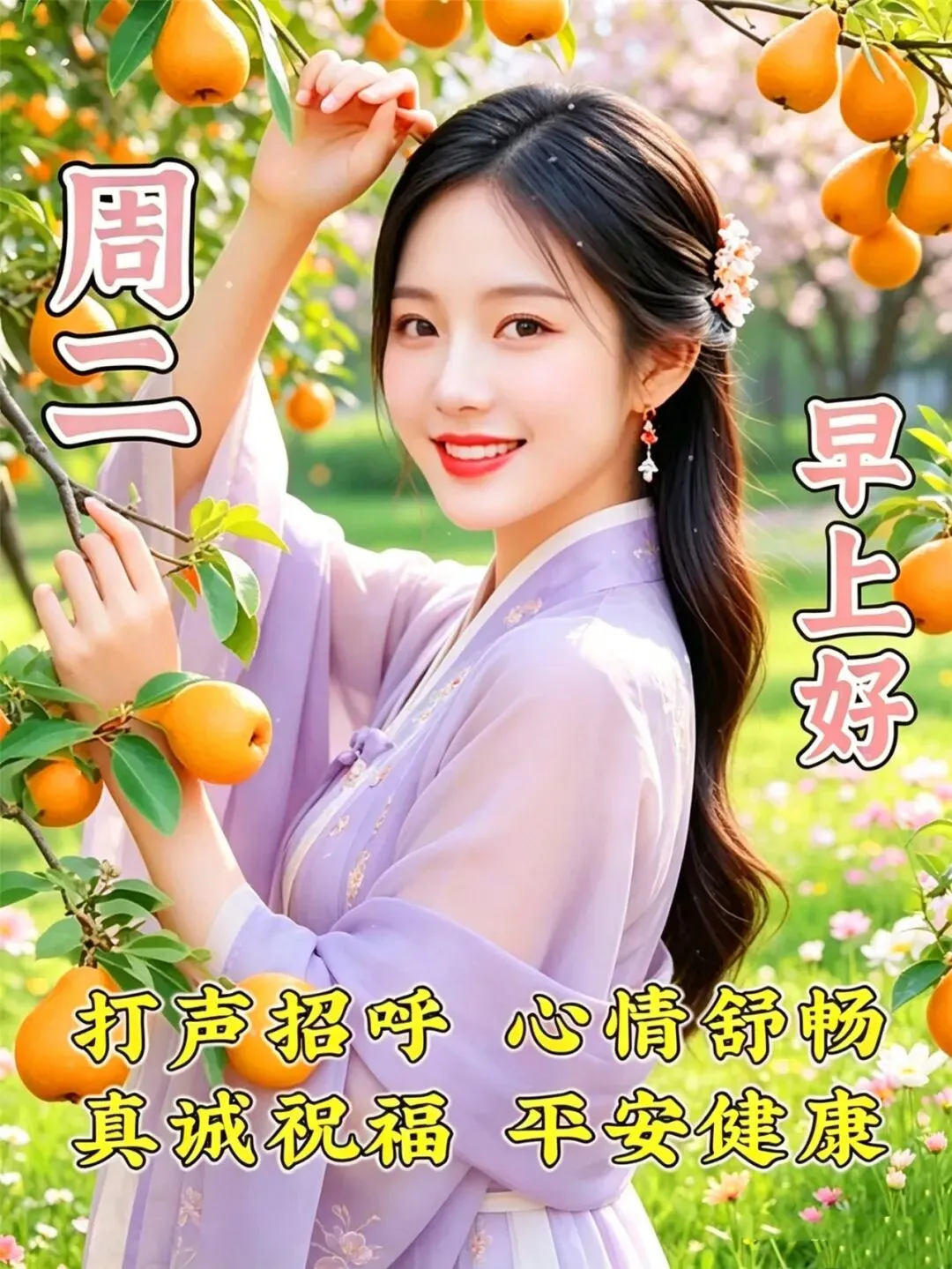 亲切的问候,写在清晨里,暖心的祝福,印在脑海里,相互的牵挂,留在缘分里,彼此的情谊,珍藏在心里,周二早上好!