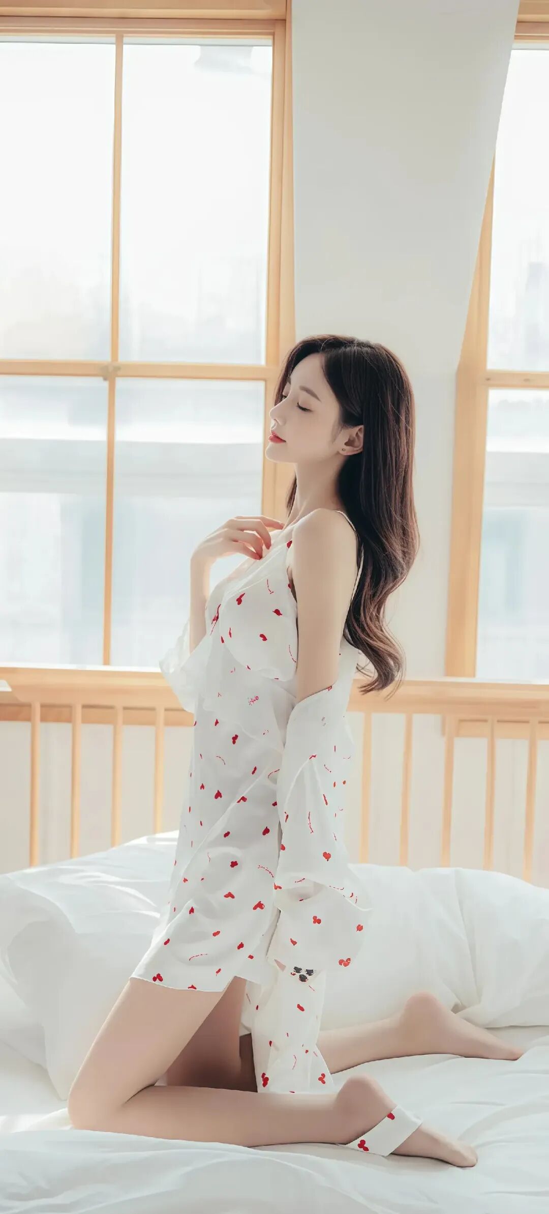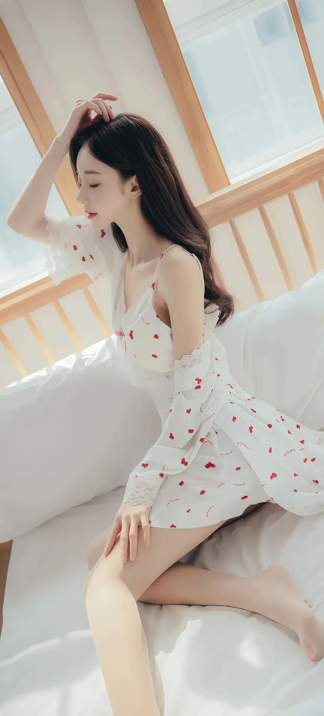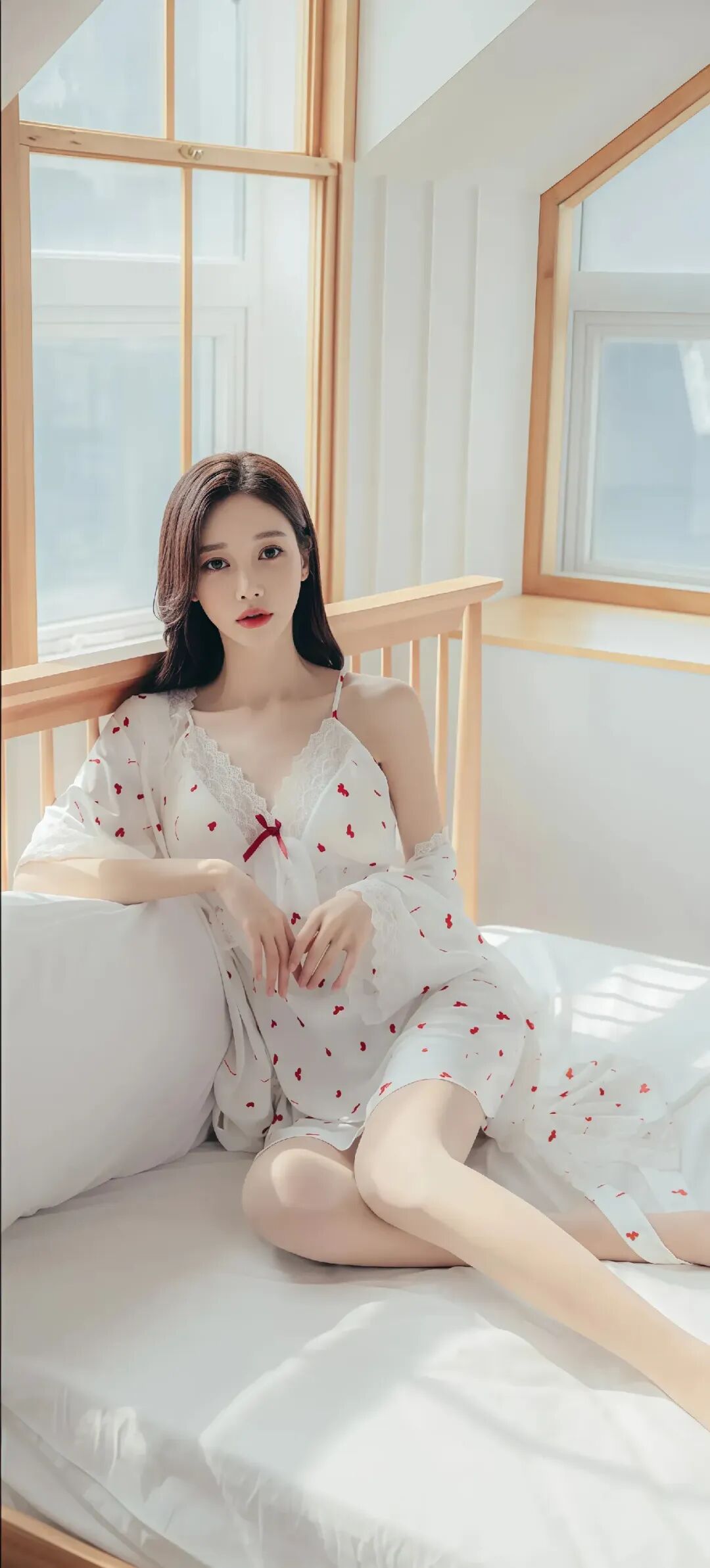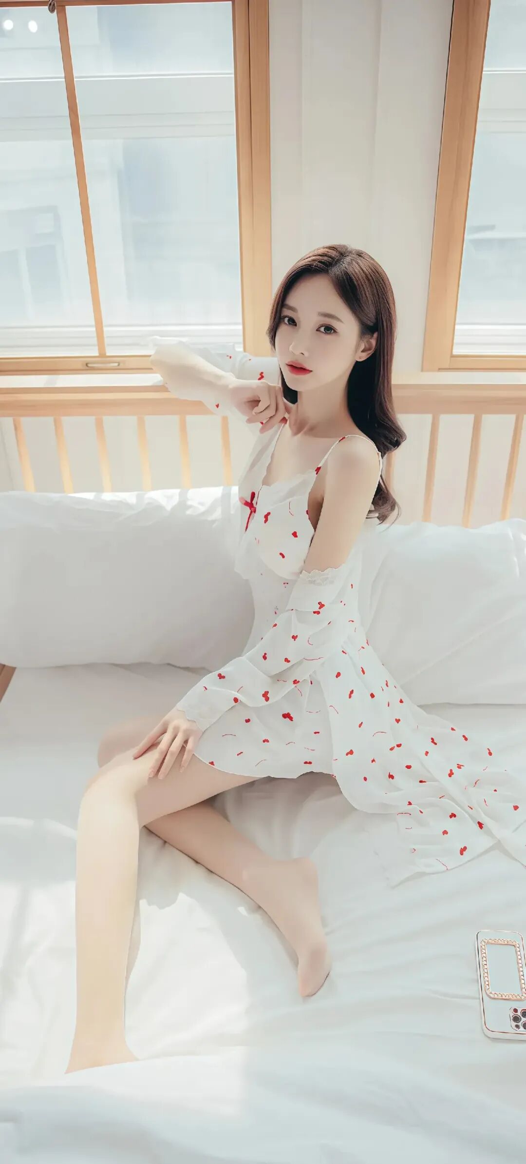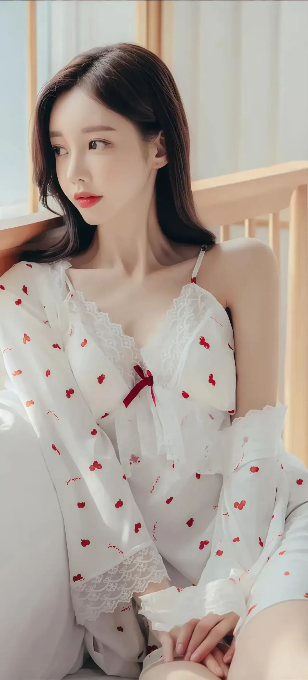 当前位置:首页>美女资讯>美女模特孙允珠温柔甜美的少女,穿着红色草莓图案的白色睡衣,坐在舒适的床上,散发着温馨的气息