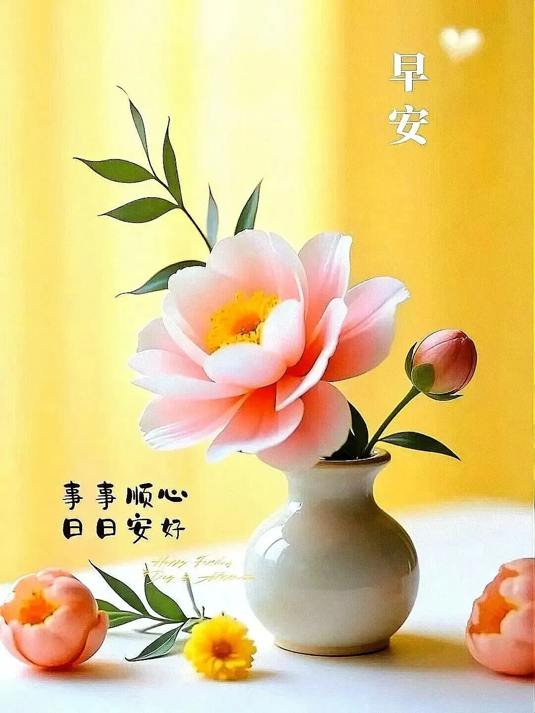 心中有花开,人生春常在,静观万千繁华,笑对一路芬芳。愿你有前进一寸的勇气,亦有后退一尺的从容。用一颗简单温暖的心 ,做一个快乐幸福的人!❤️☕️🎉🌹🌾🙏