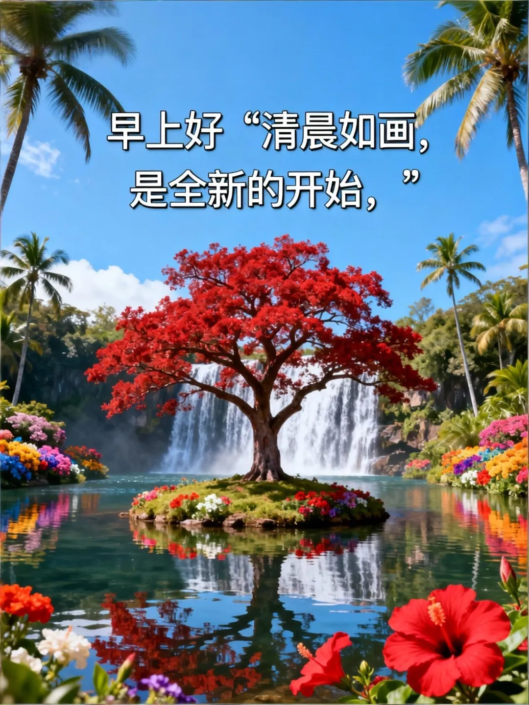 晓风残月渐西沉,曙光初现照乾坤;昨夜星辰昨夜梦,今朝美景今朝新;且将烦恼付流水,化作祥云伴晨昏。🌹🌼🌾☕️🌺🎉