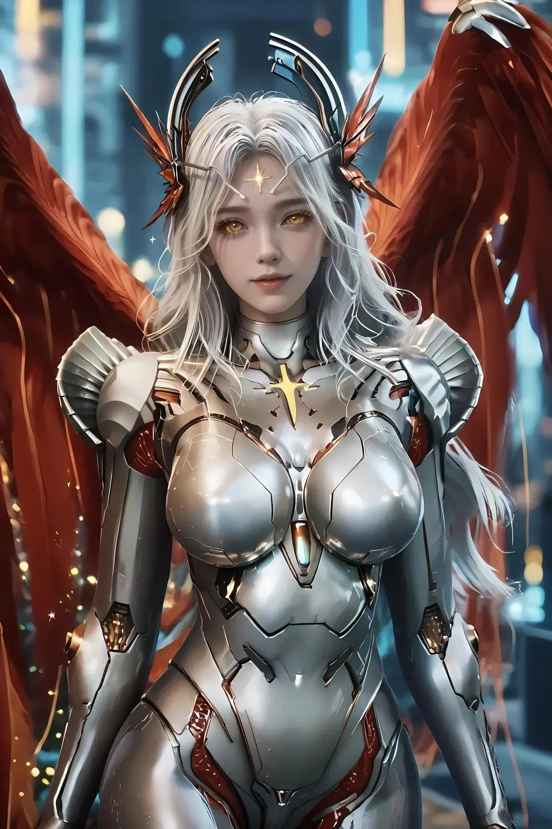 她拥有一头白色长发,金色的眼眸,背后一对华丽的翅膀,建模精美绝伦,一举一动都散发着妖娆妩媚的气质。