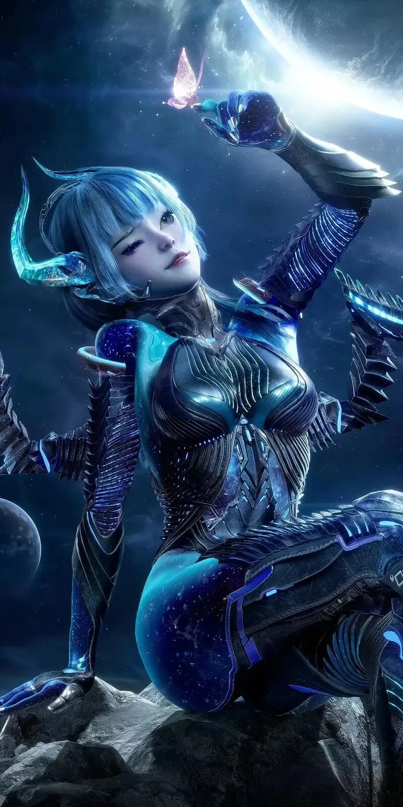 呼延博封印于地球 31 号遗迹的原生虫族母皇,为地球预留的终极战力。形象高挑妖娆,身披银甲,背生蝶翼,头顶红瞳虫冠,气质妖异冷艳。