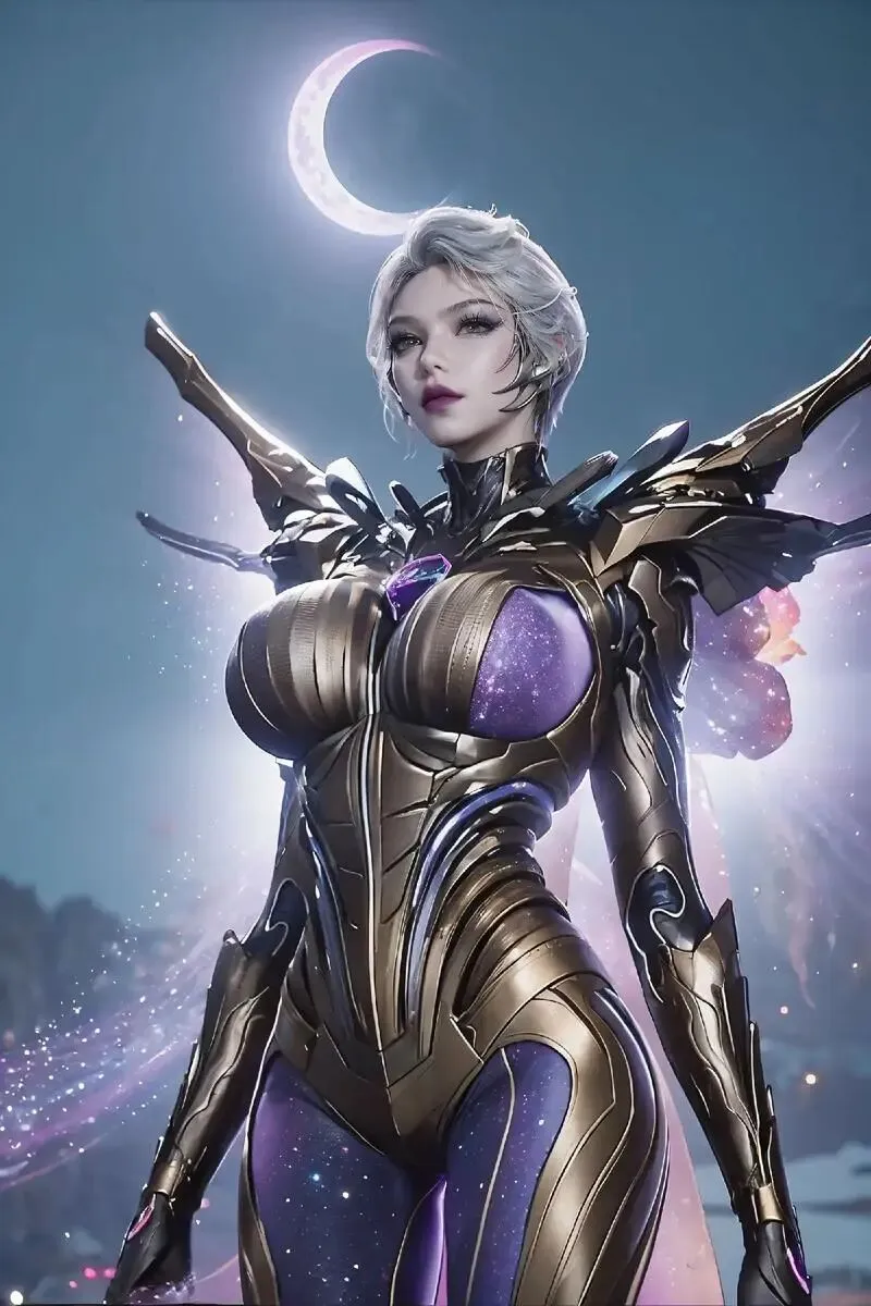 标志性黑色短发 、青色眼眸,常着银白色贴身机甲,气质清冷飒爽,御姐范十足。在穹玉星与洪相遇,两人一见钟情。虽遭师父幻灵王以 “十八爱欲幻境” 阻挠,但她拒绝了 “断情变强” 的诱惑,选择与洪相守,圆满了原著的遗憾。