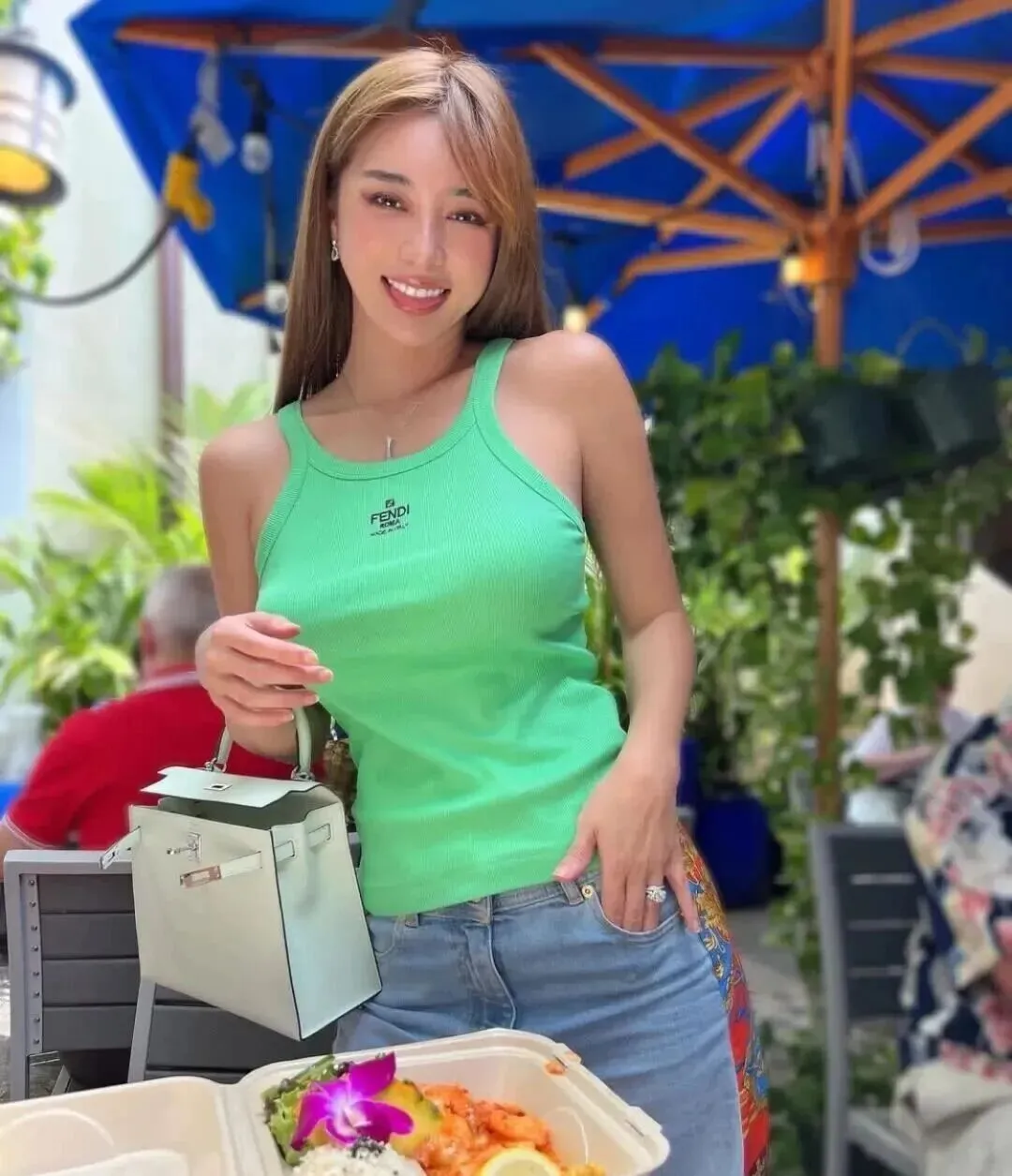 从高腰阔腿裤勾勒出腰臀比例,到V领吊带裙展现肩颈线条,再到紧身包臀裙搭配细跟高跟鞋——每一套都踩在审美点上。她尤其偏爱爱马仕和LV,日常晒包频率堪比半个时尚博主-