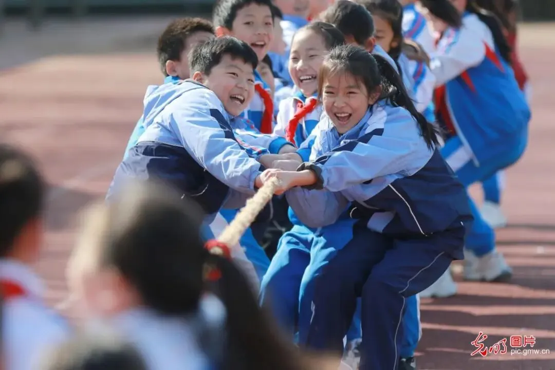 山东省高密市恒涛实验小学,小学生在进行拔河比赛。