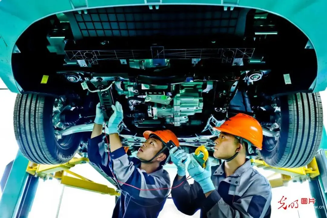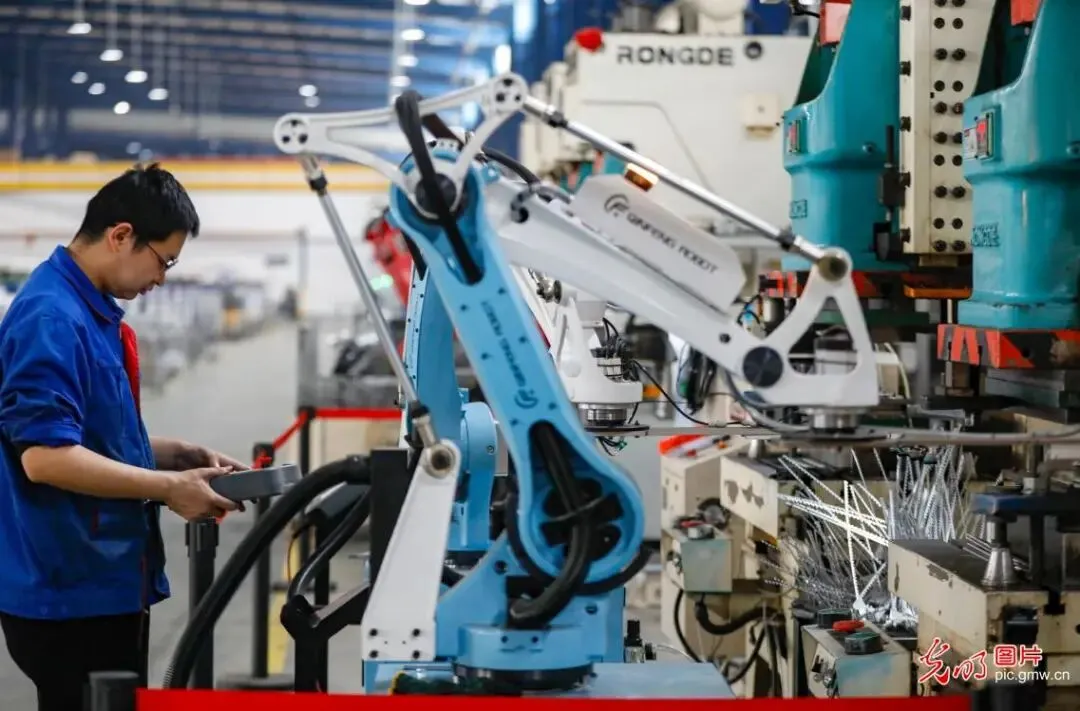 江苏泗洪某汽车配件公司生产线上,工业机器人正按照操控设置精准作业。