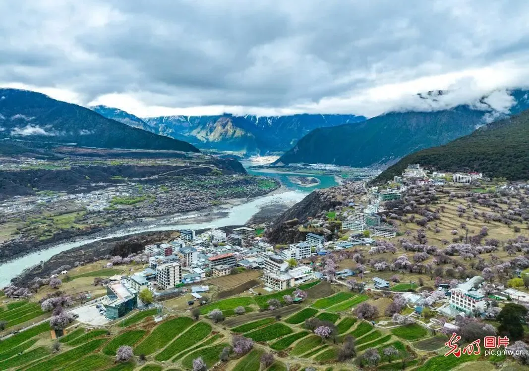 3月31日,西藏林芝市米林县派镇,雅鲁藏布大峡谷两岸桃花竞相绽放,美不胜收。
